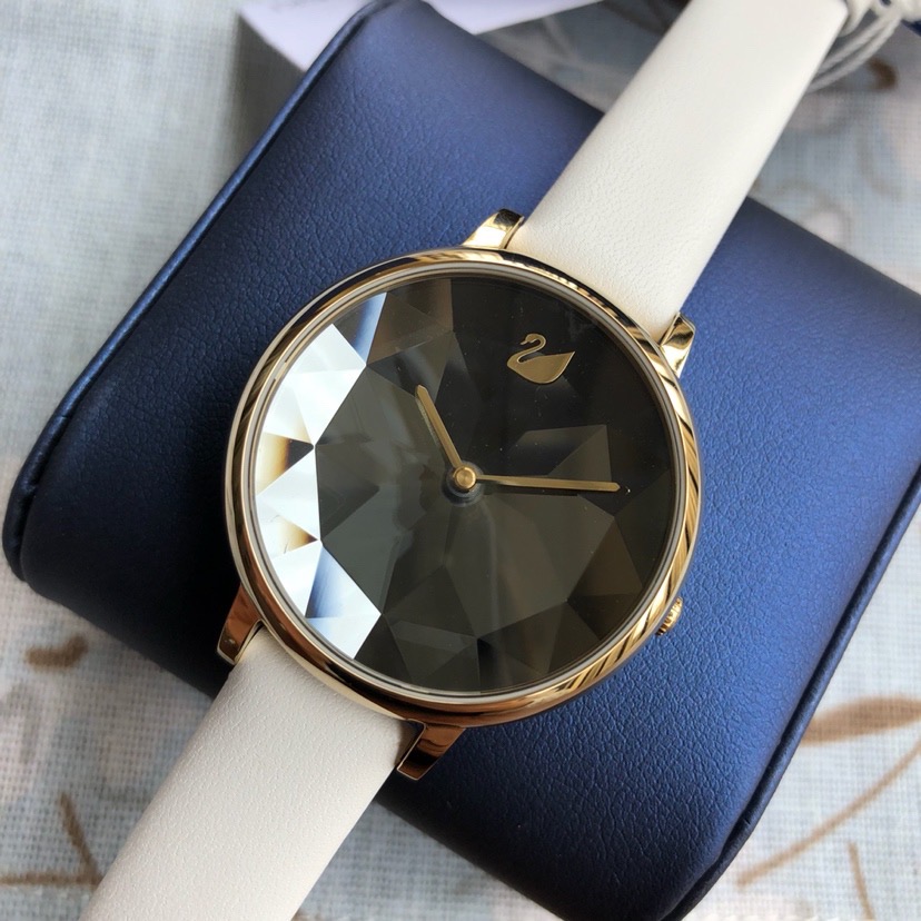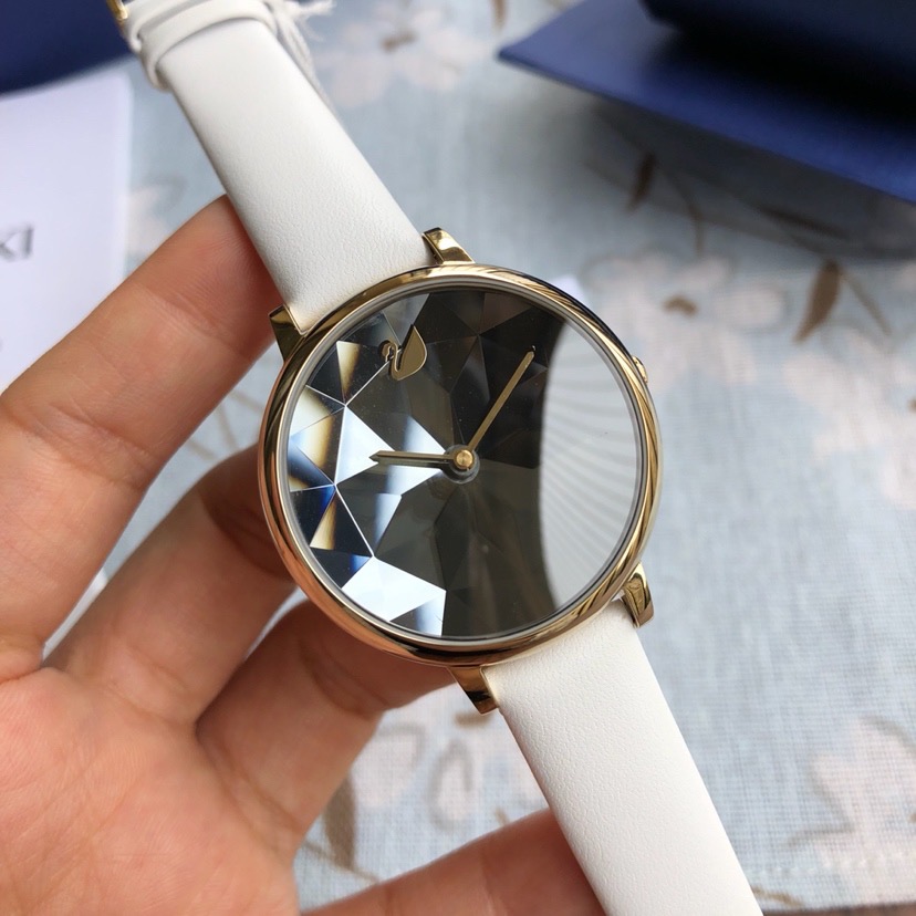 施华洛世奇小天鹅Crystal Lake系列,表盘是由一整件闪亮迷人的Swarovski蓝宝石水晶,采用钻石切割工艺制成八心八箭团,别树一格,适合日常装扮增添闪亮魅力的时尚女性;