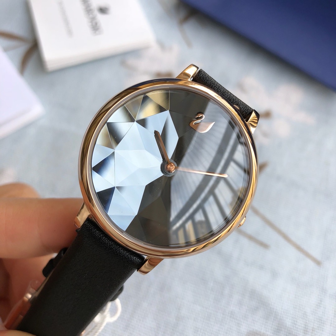 施华洛世奇小天鹅Crystal Lake系列,表盘是由一整件闪亮迷人的Swarovski蓝宝石水晶,采用钻石切割工艺制成八心八箭团,别树一格,适合日常装扮增添闪亮魅力的时尚女性;