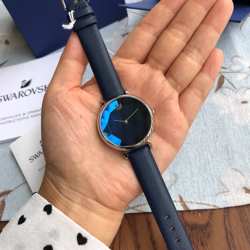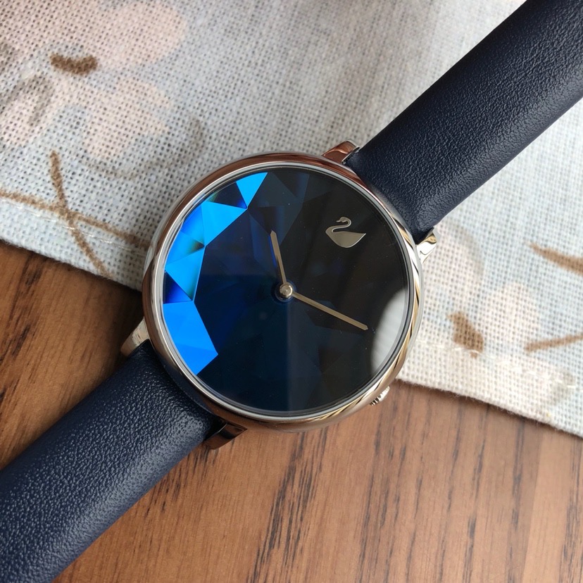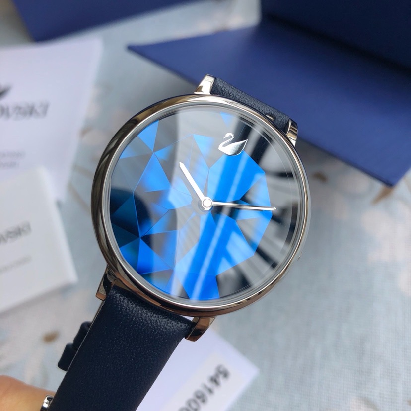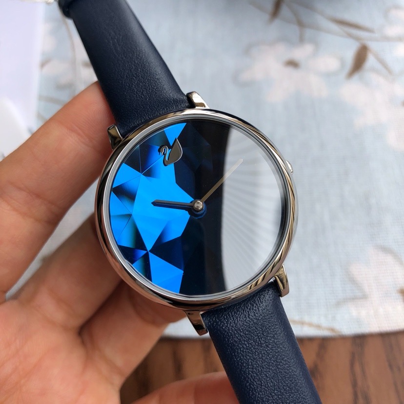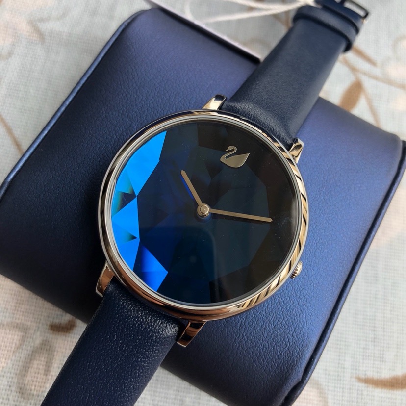 施华洛世奇小天鹅Crystal Lake系列,表盘是由一整件闪亮迷人的Swarovski蓝宝石水晶,采用钻石切割工艺制成八心八箭团,别树一格,适合日常装扮增添闪亮魅力的时尚女性;
