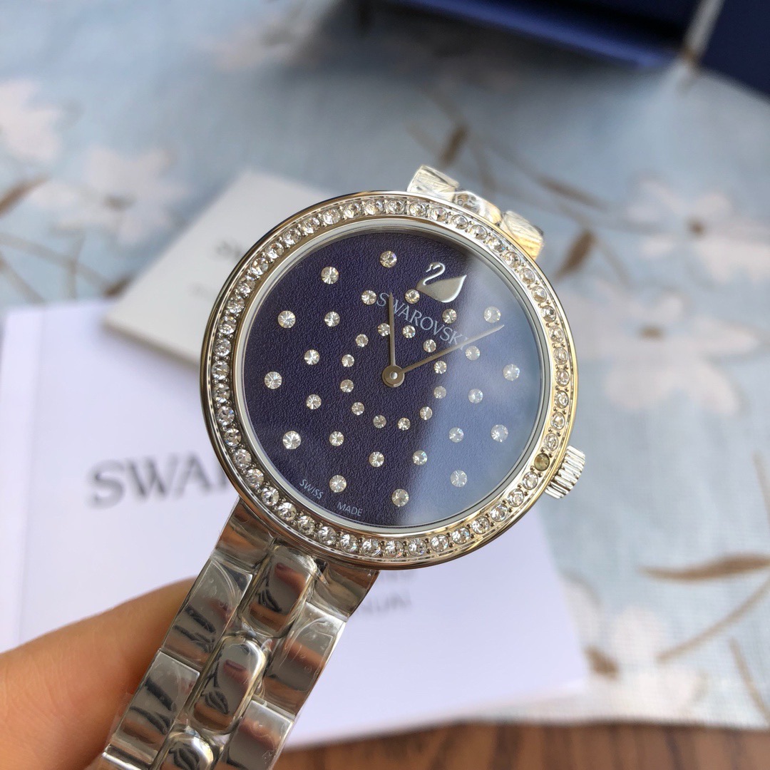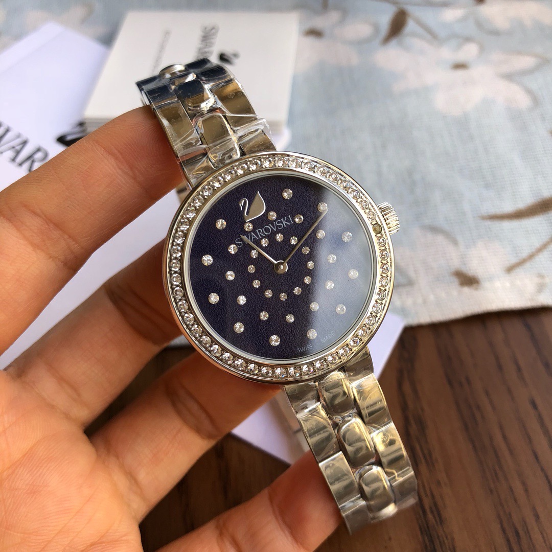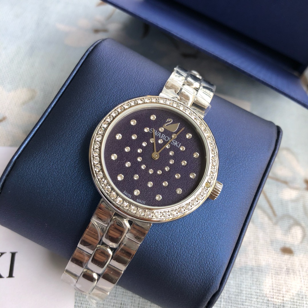 施华洛世奇(Swarovski Daytime系列 )经典之作,条钉刻度简洁清晰,圈口镶钻设计独具匠心,适合日常各种装扮 整表原厂配件;