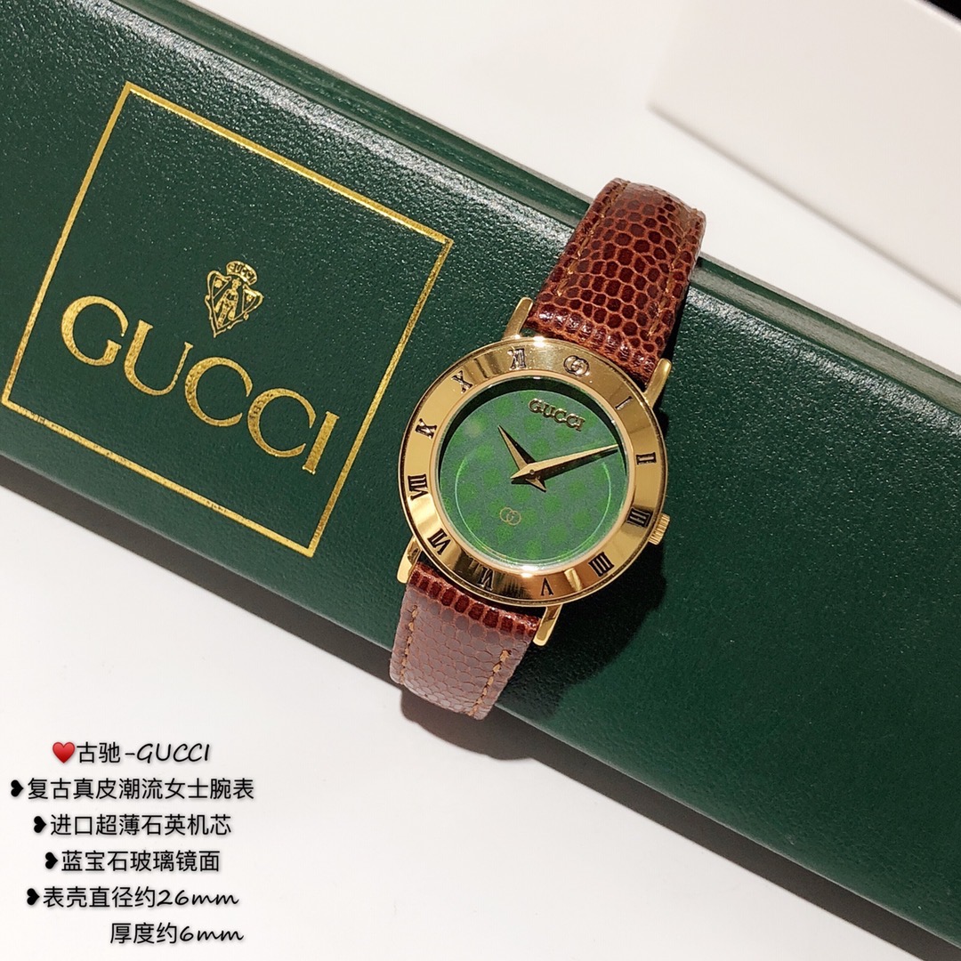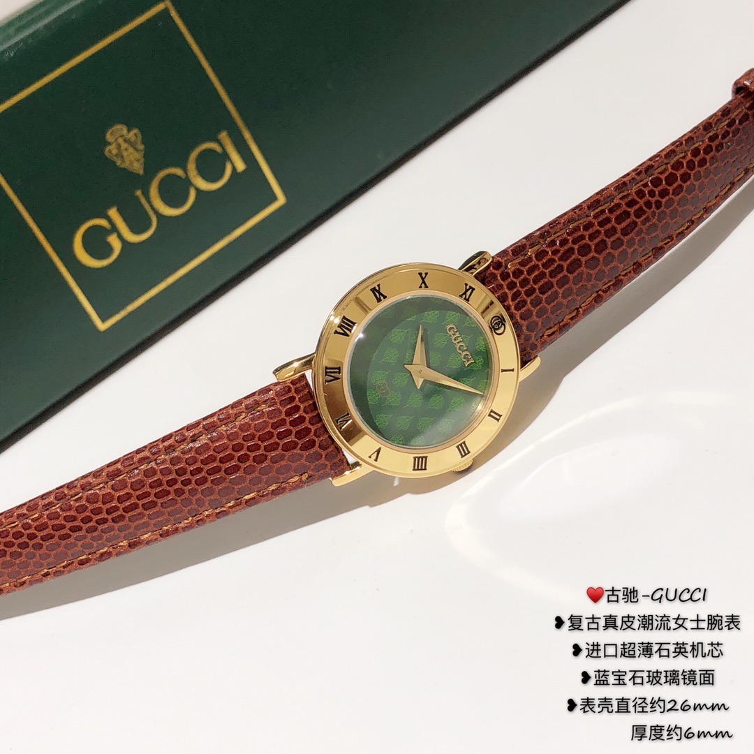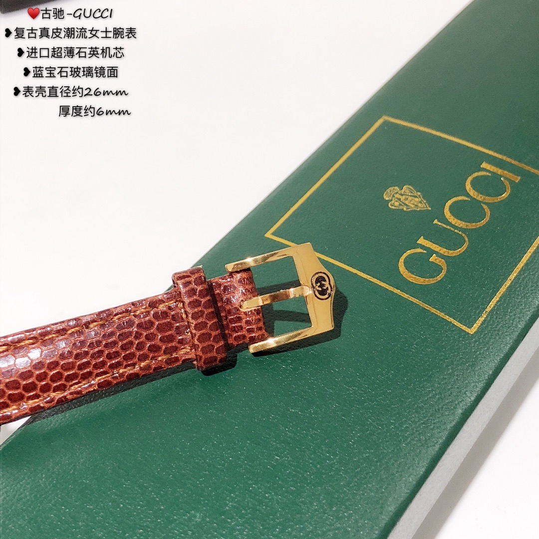 古驰-GUCCI,复古真皮潮流女士腕表,进口超薄石英机芯,蓝宝石玻璃镜面;