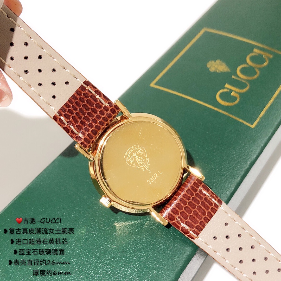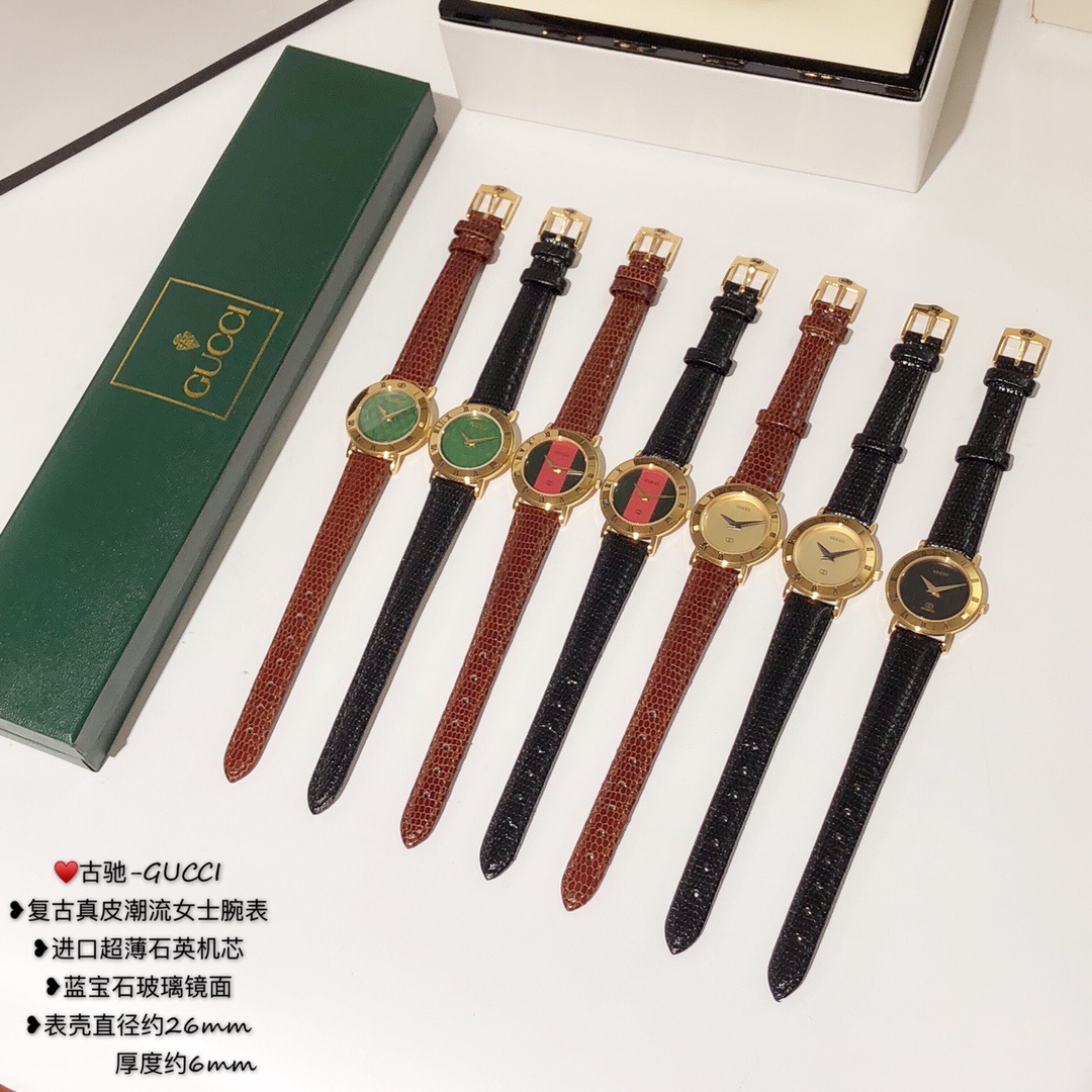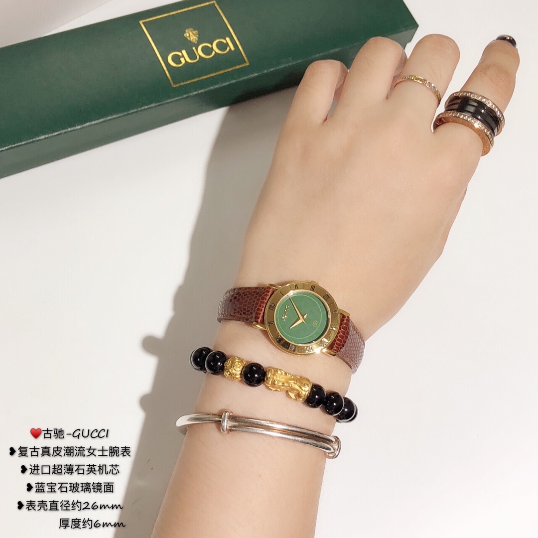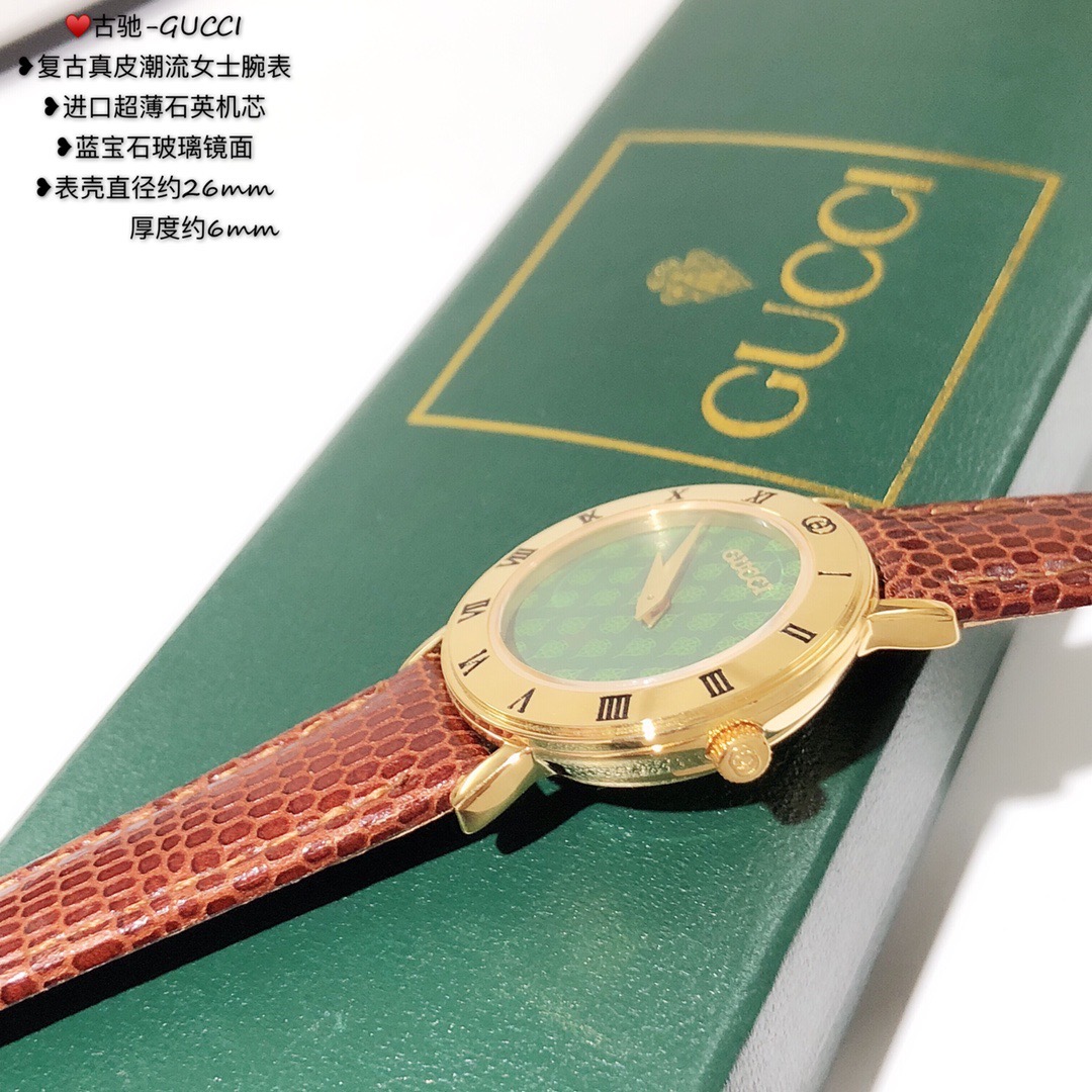 古驰-GUCCI,复古真皮潮流女士腕表,进口超薄石英机芯,蓝宝石玻璃镜面;