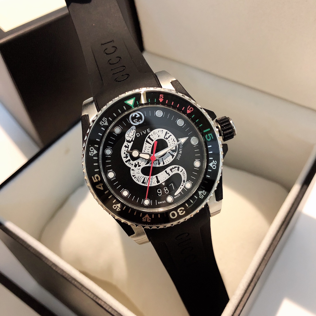 GC37 GUCCI古驰 Dive腕表,中性休闲风格的浮凸个性G家标识,橡胶表带搭配品牌代表性设计元