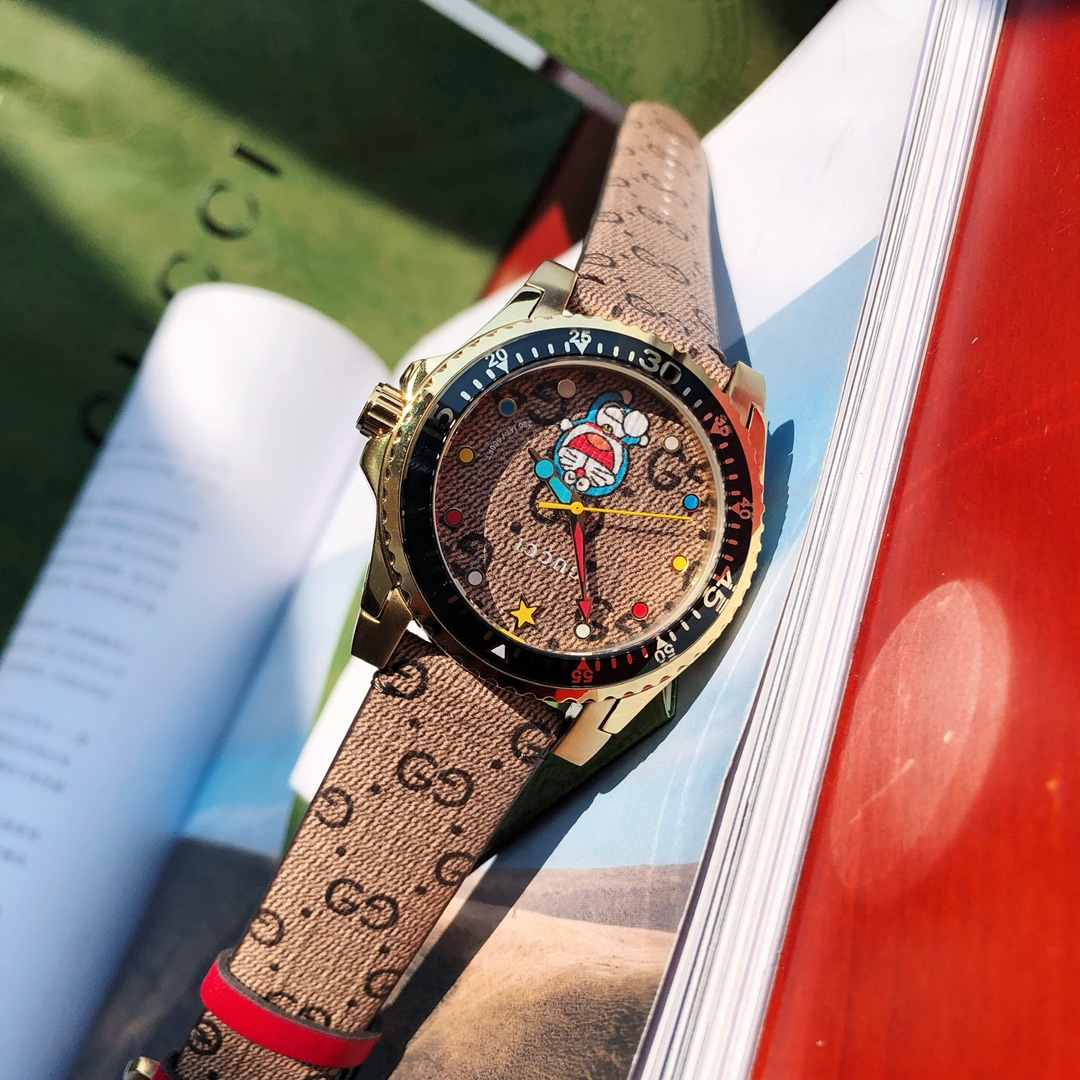 这块Gucci特别款腕表在性能上也还不错,瑞士石英机芯,进口小牛皮!带夜光!尺寸38mm情侣必入一眼就看中的手表,主要真的太喜欢多啦A梦了!!配专柜最新包装出!