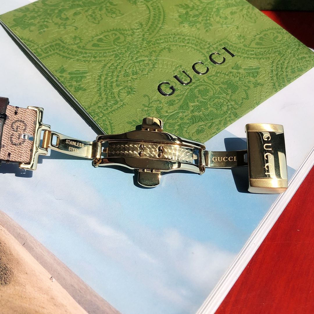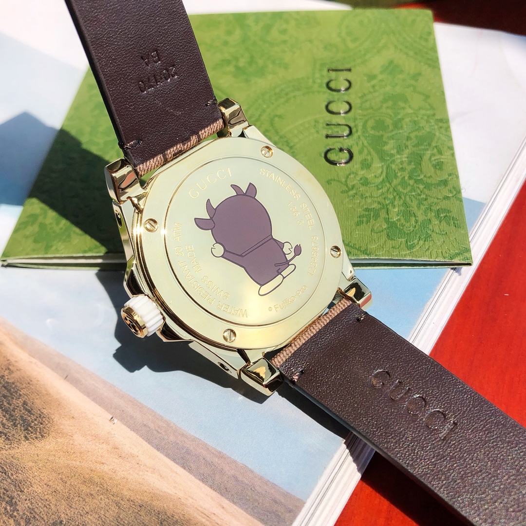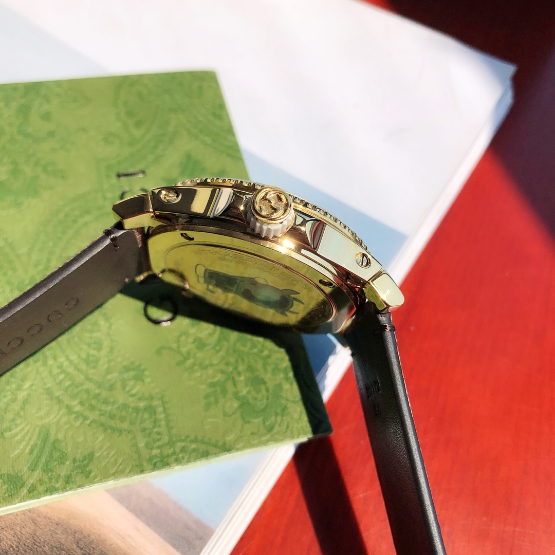 这块Gucci特别款腕表在性能上也还不错,瑞士石英机芯,进口小牛皮!带夜光!