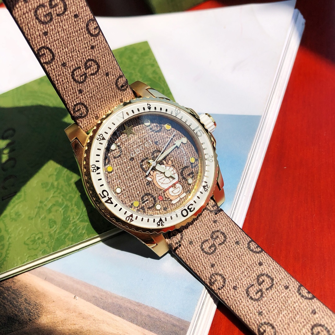 相信多啦A梦所有大小朋友都很熟悉,尤其是他那个什么都能裝的百宝袋,还有可以带大家环游世界的隨意门,勾起了充滿着大家不少的童年回忆. 喜欢多啦A梦的朋友今年的新款gucci古驰腕表不能错过哦!复古又时髦超有气质!今年Gucci哆啦A梦的联名被很多人说太走心了!真的是可可爱爱没有脑袋!两个牛角再搭配老花的经典颜色,简直是完美match。休闲➕可爱➕情怀一并get。