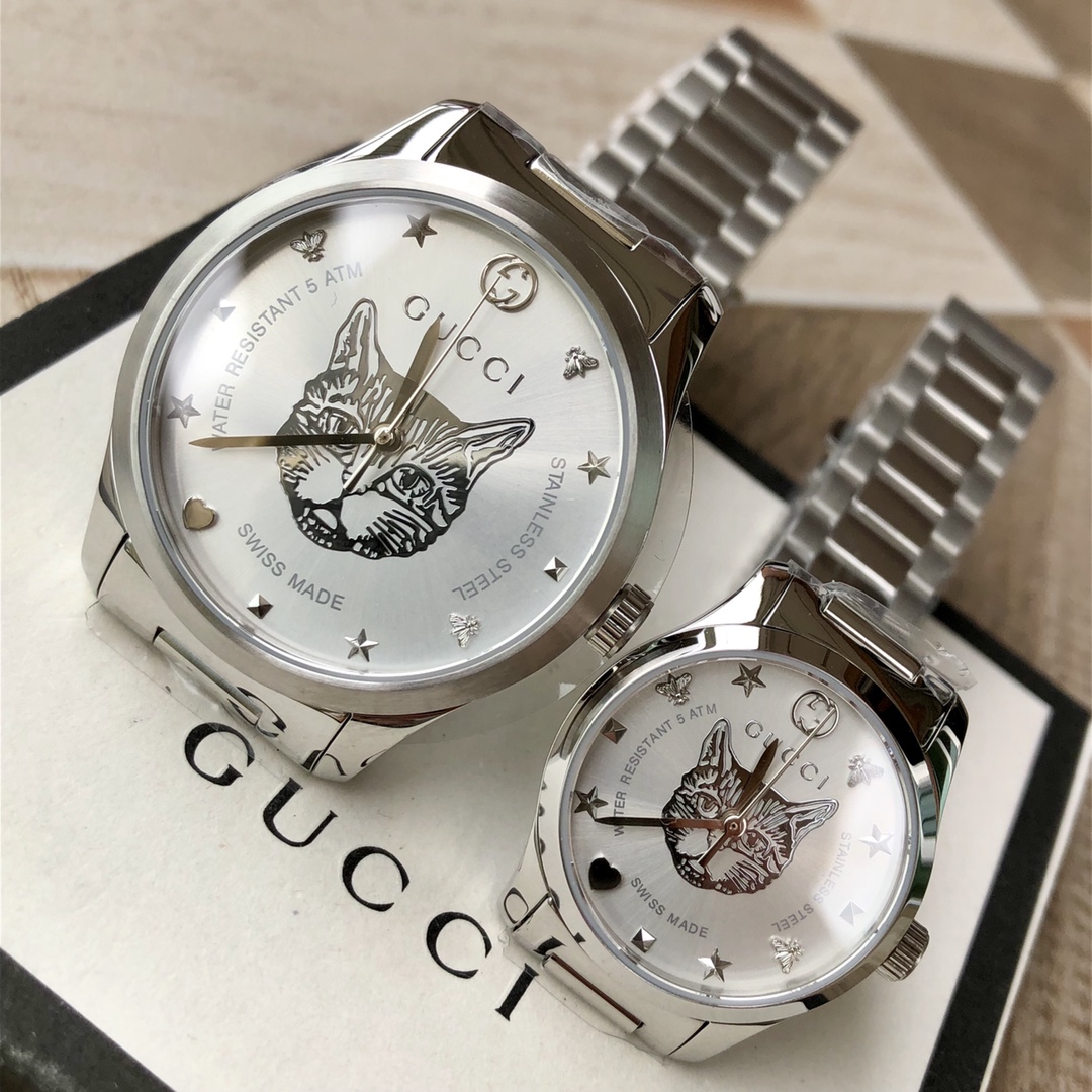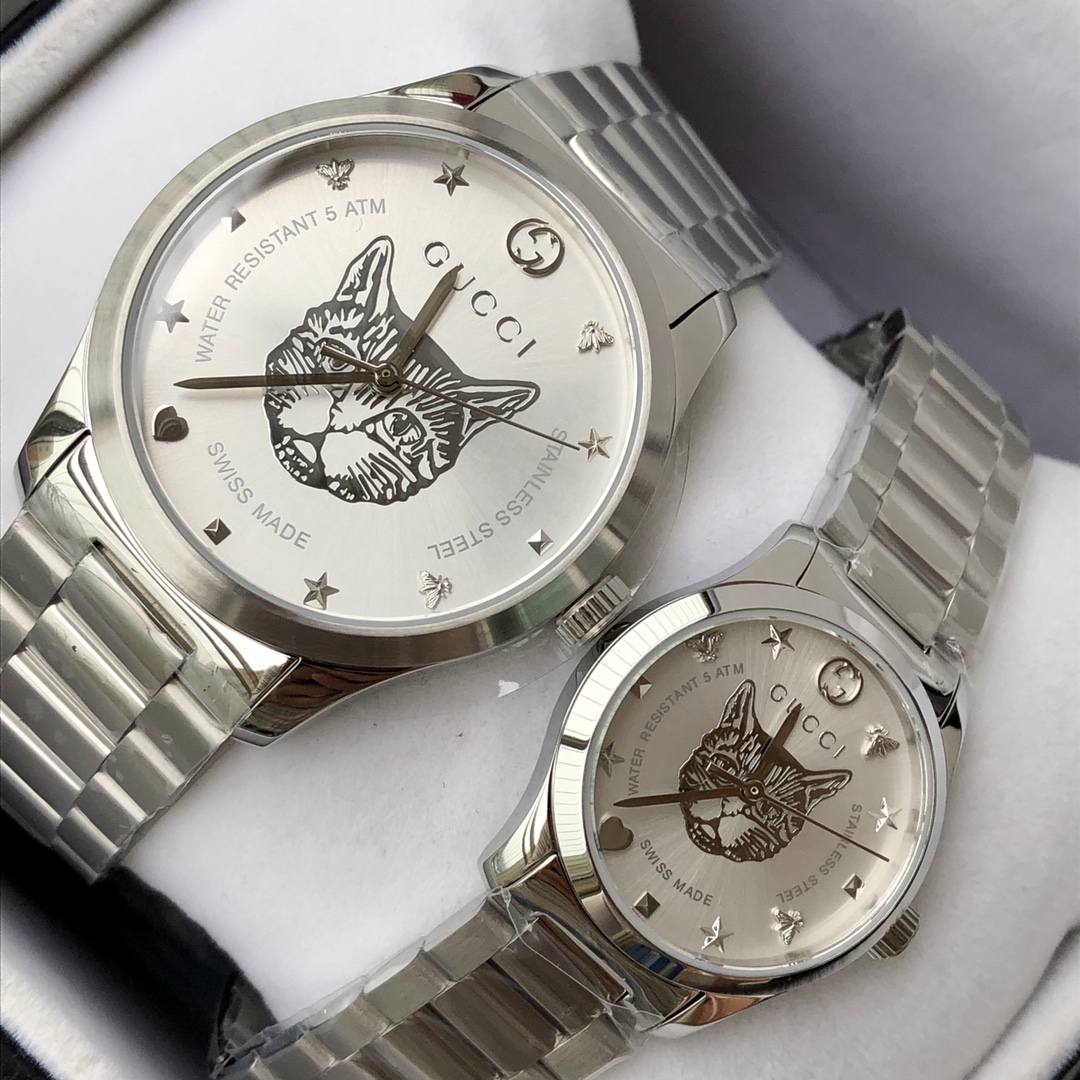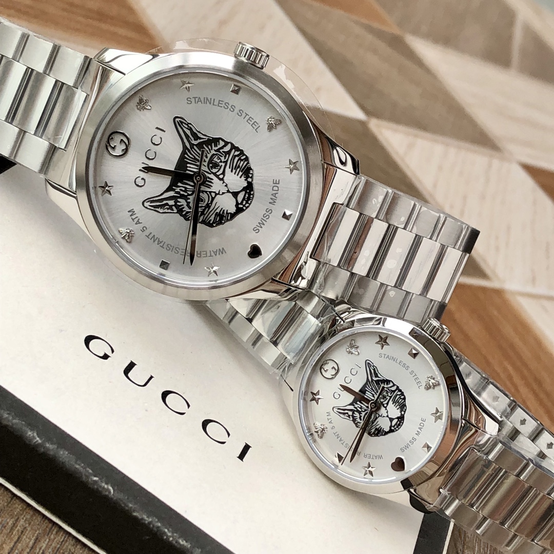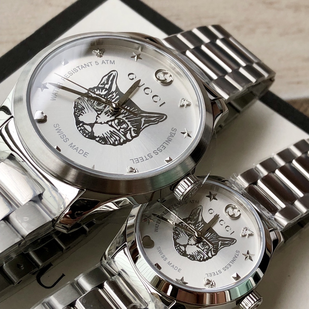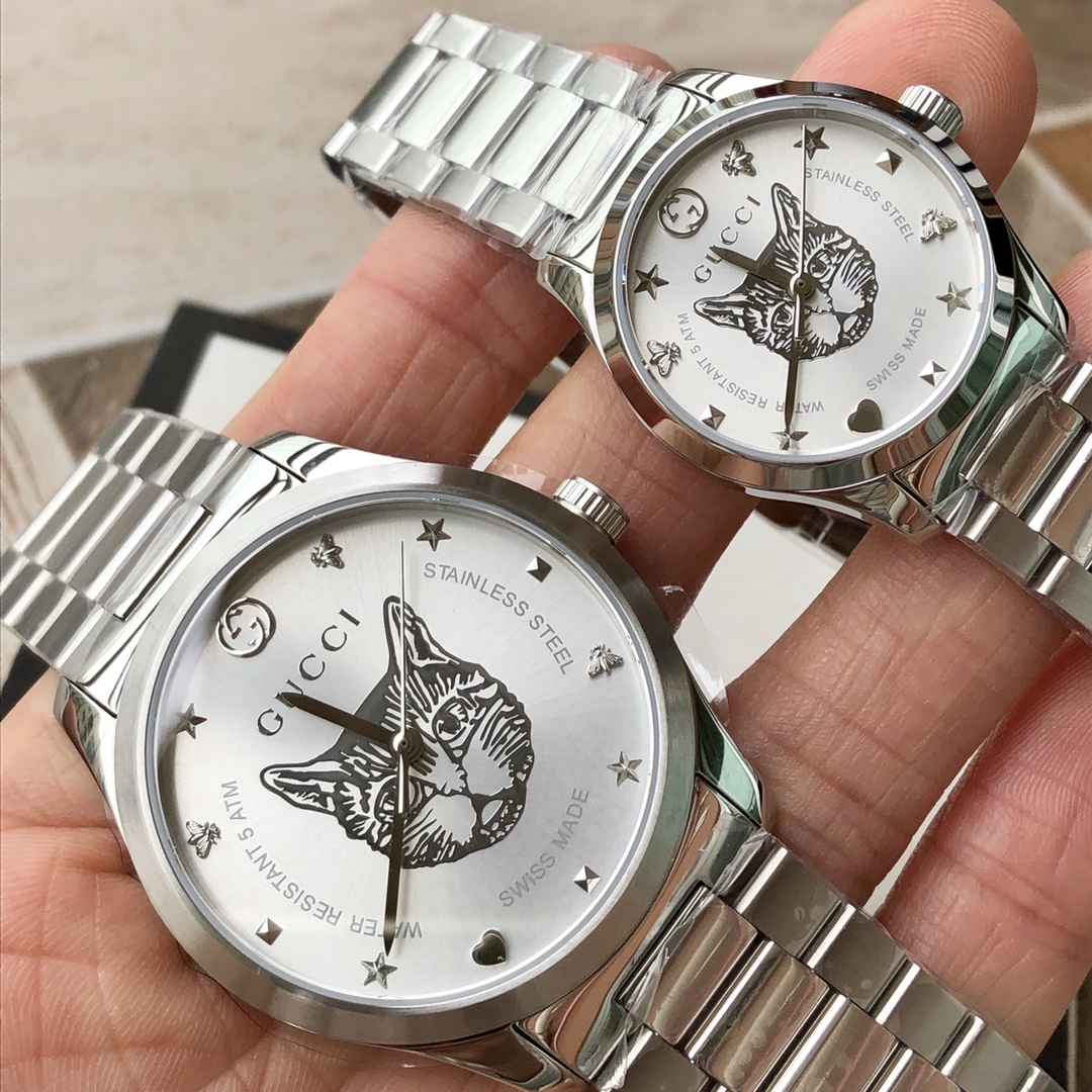 GC54 Gucci专柜最新小蜜蜂系列情侣表;男款~38mm,女款~28mm表径,316L不锈钢薄表