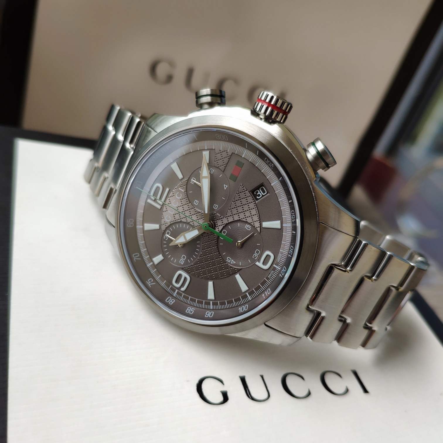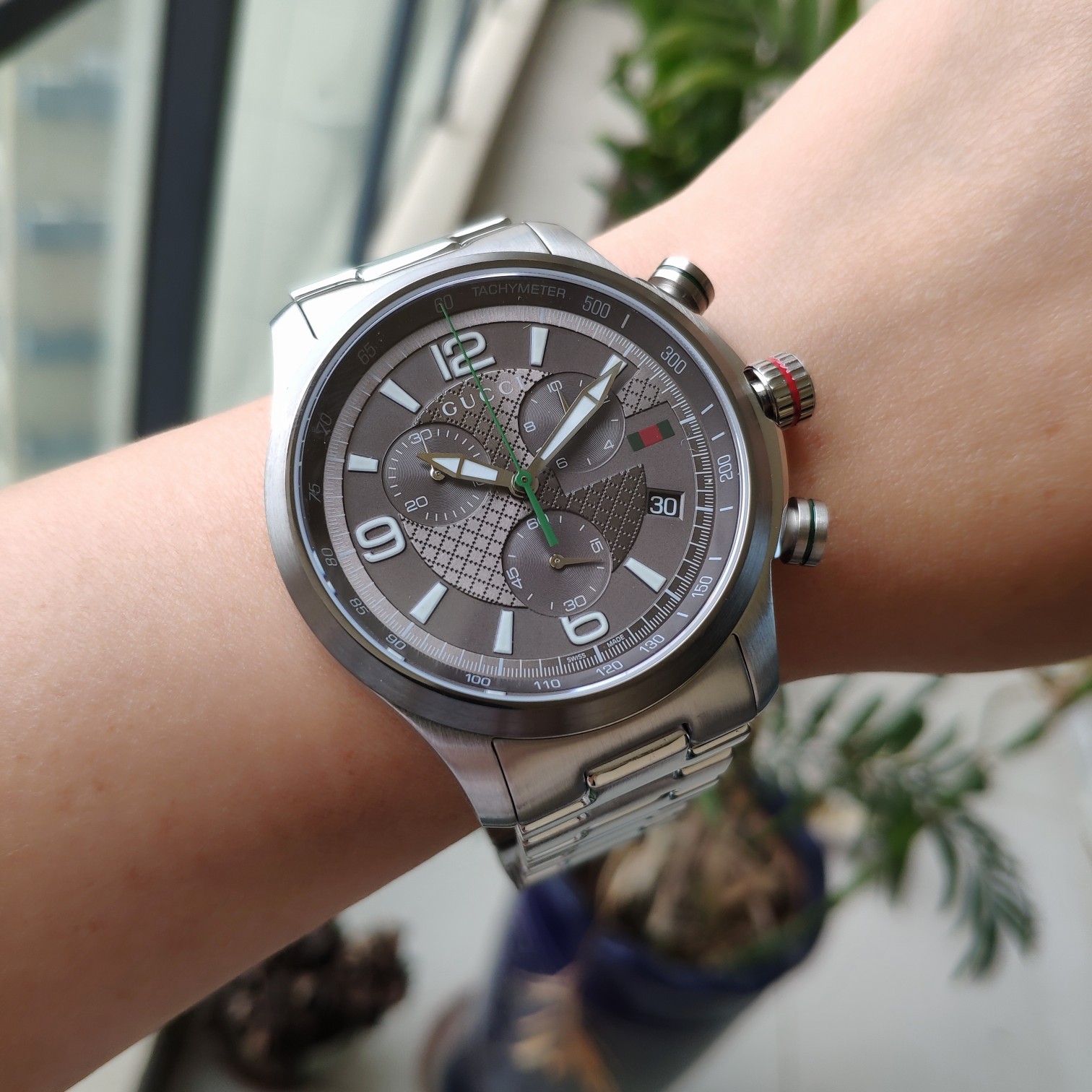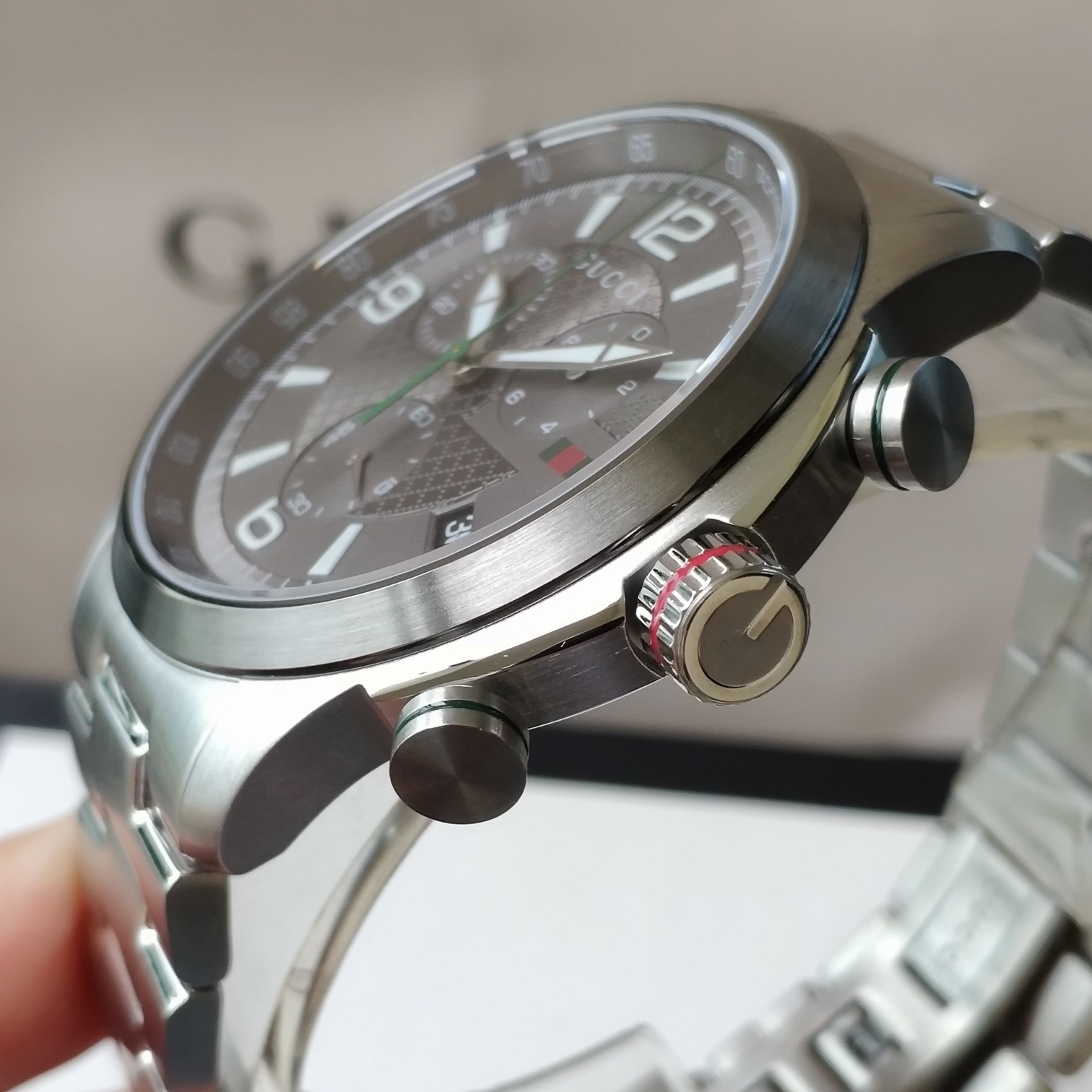Gucci古驰原厂小蜜蜂六针石英男表,43mm,原装瑞士机芯,蓝宝石玻璃,316L精钢带,注意细节对比。防水50m,强力推荐,好货!全套包装!