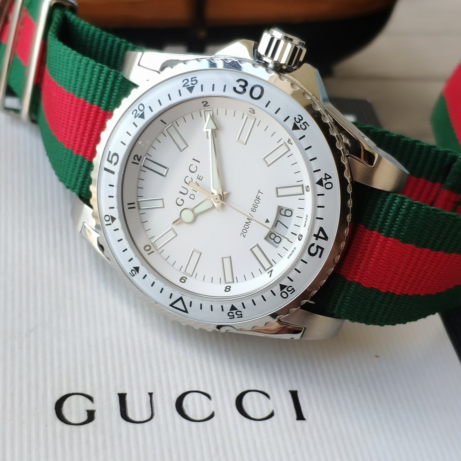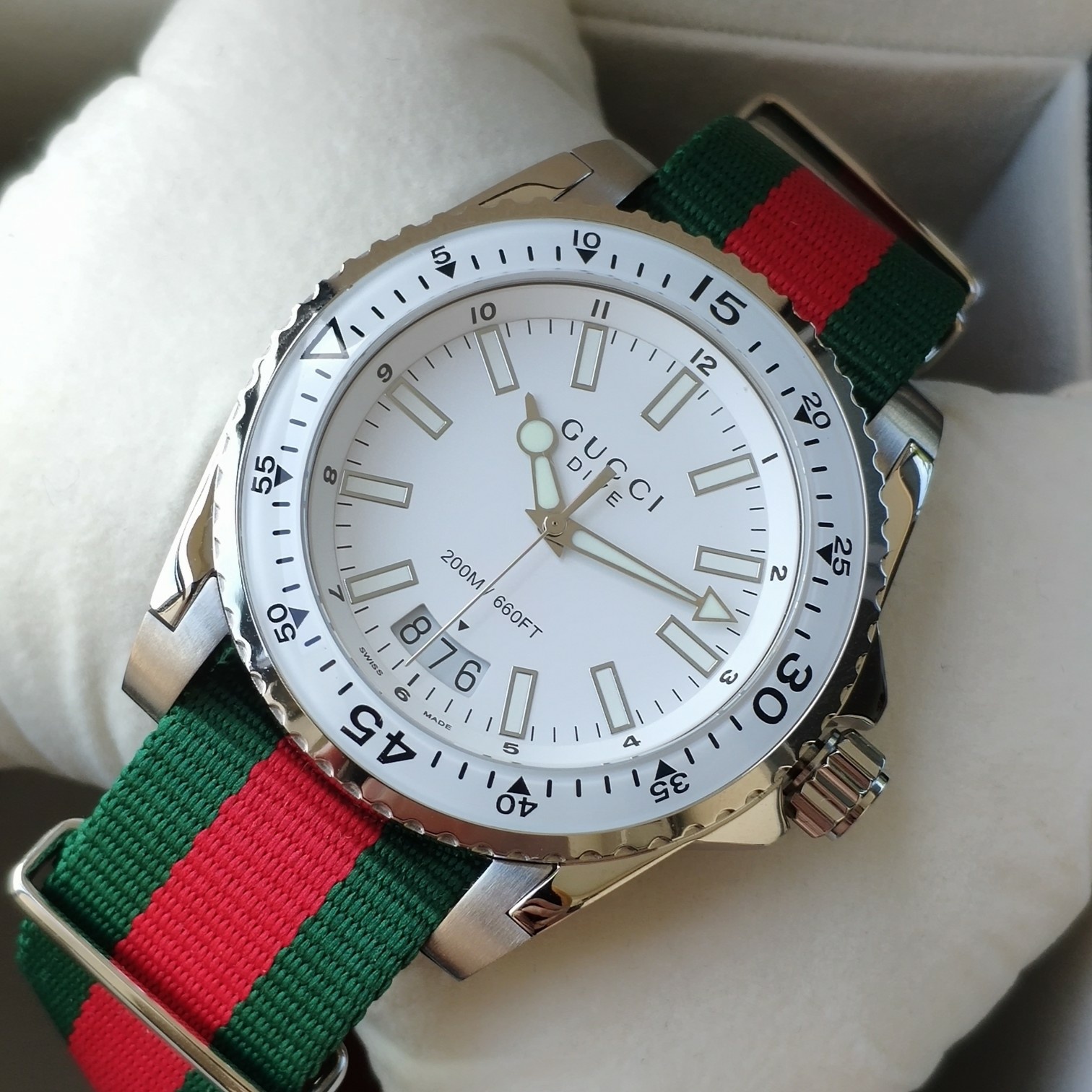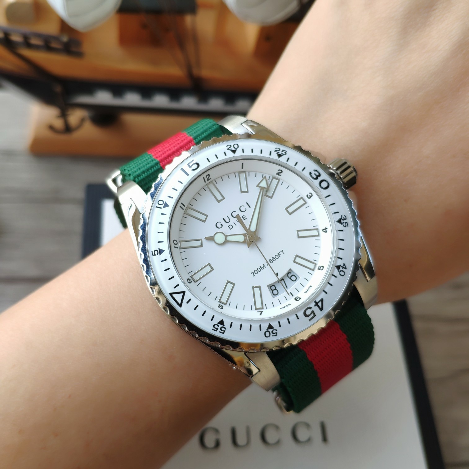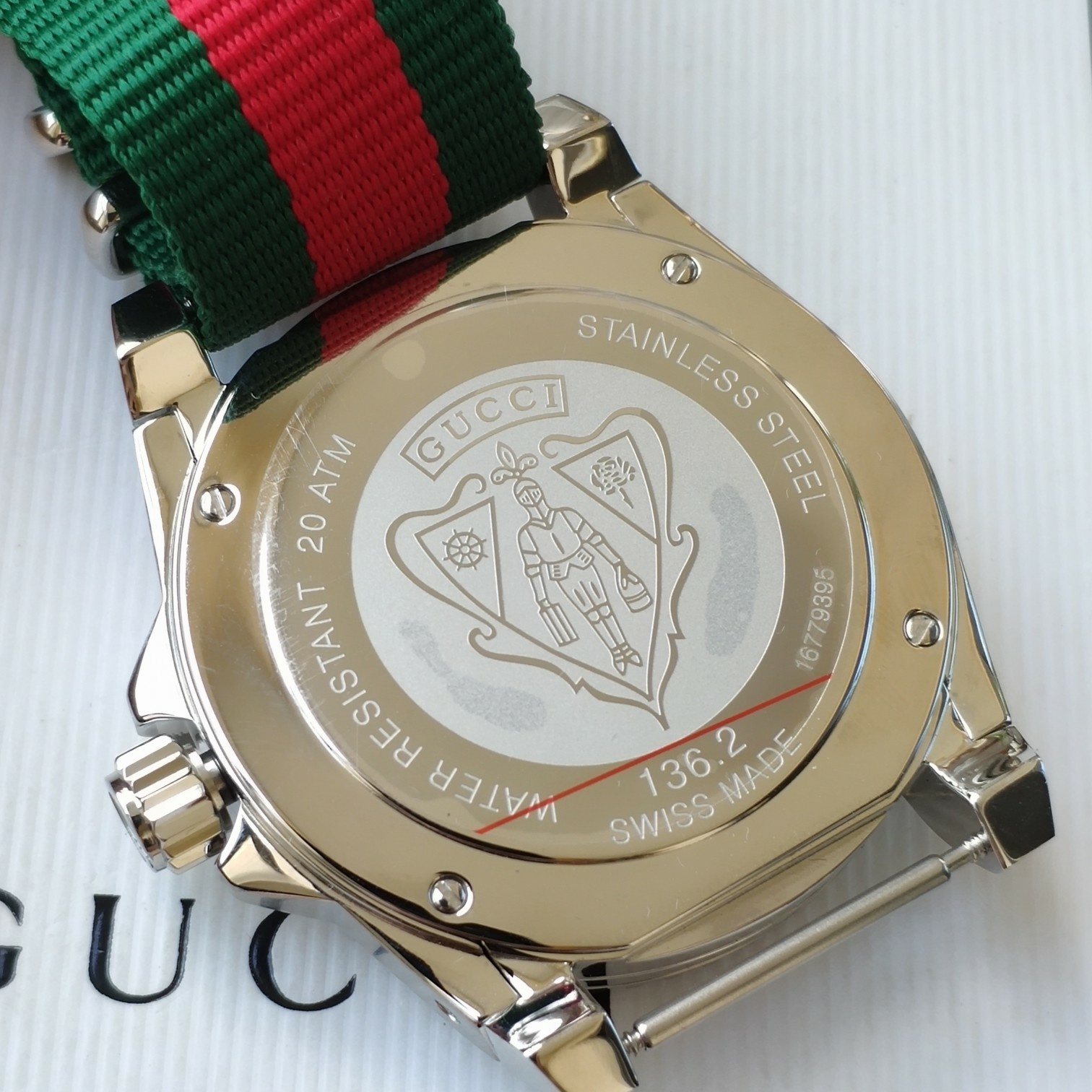“GC67 古驰GUCCl水鬼最新款,蓝宝石玻璃,原装瑞士机芯,帆布表带,表径45mm!防水200m!” 的相关文章