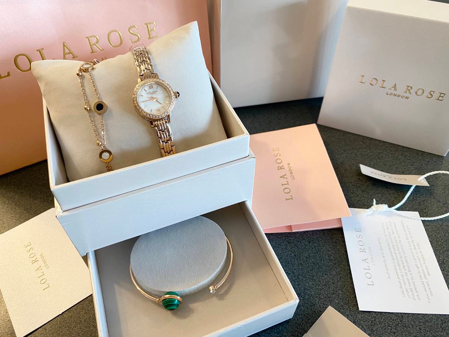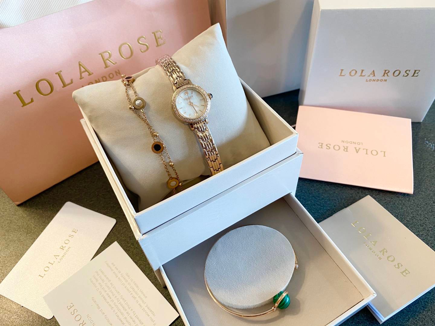 LolaRose原单防伪标志钻圈黄金链 表盘帅气十足!手镯蓝色球非常美!主推款小红书同款,LolaRose英国小众简约文艺小表盘ins女表森系,尺寸26mm,配专柜原盒包装;