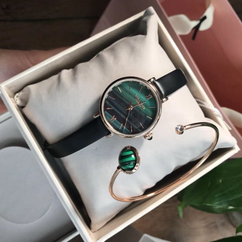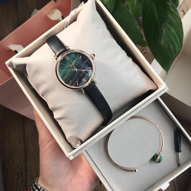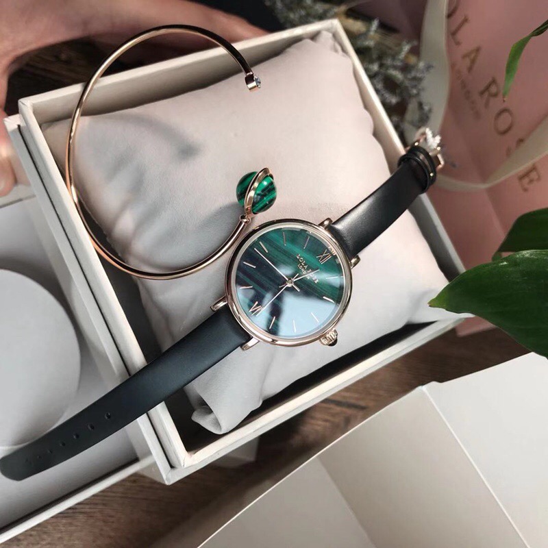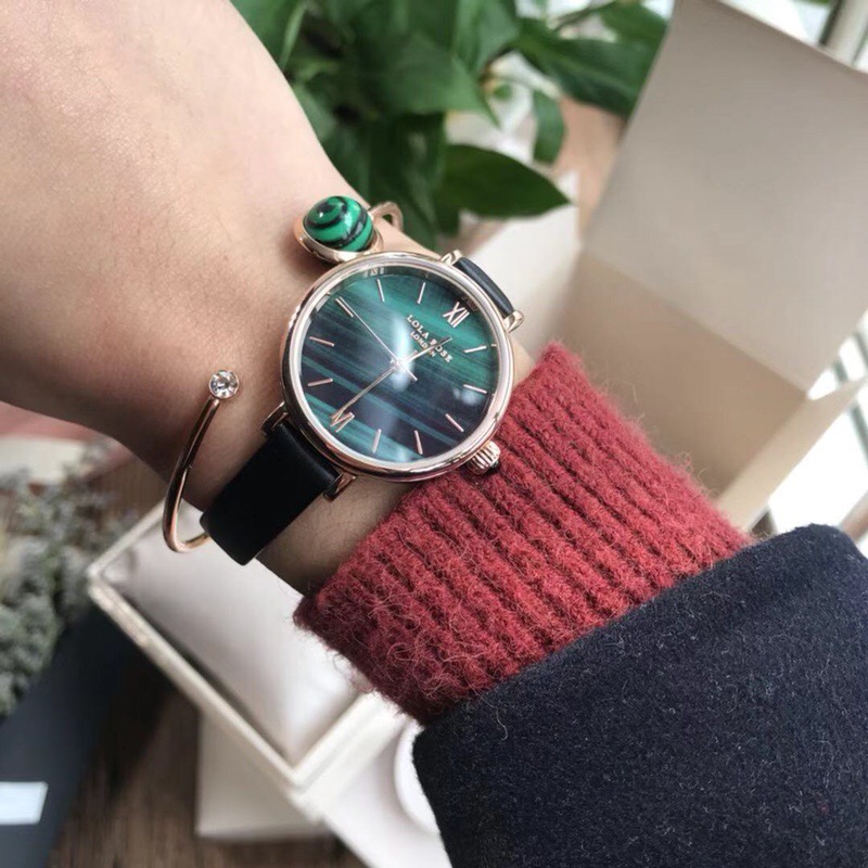 LOLA的孔雀绿女表 ,手表加手镯配饰标志性的色彩搭配经久耐用的细长的表带,典型的时尚式新花样;