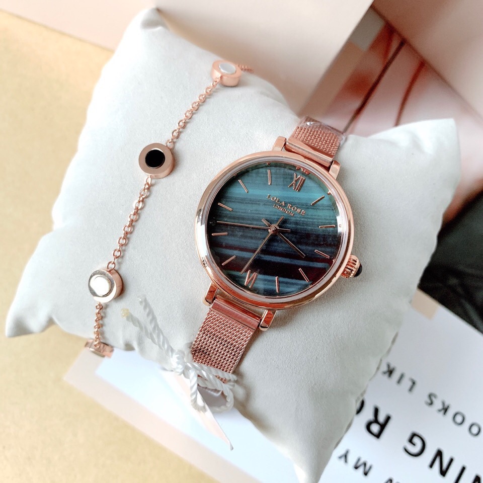 LOLA的孔雀绿女表 ,手表加手镯配饰标志性的色彩搭配经久耐用的细长的表带,典型的时尚式新花样;
