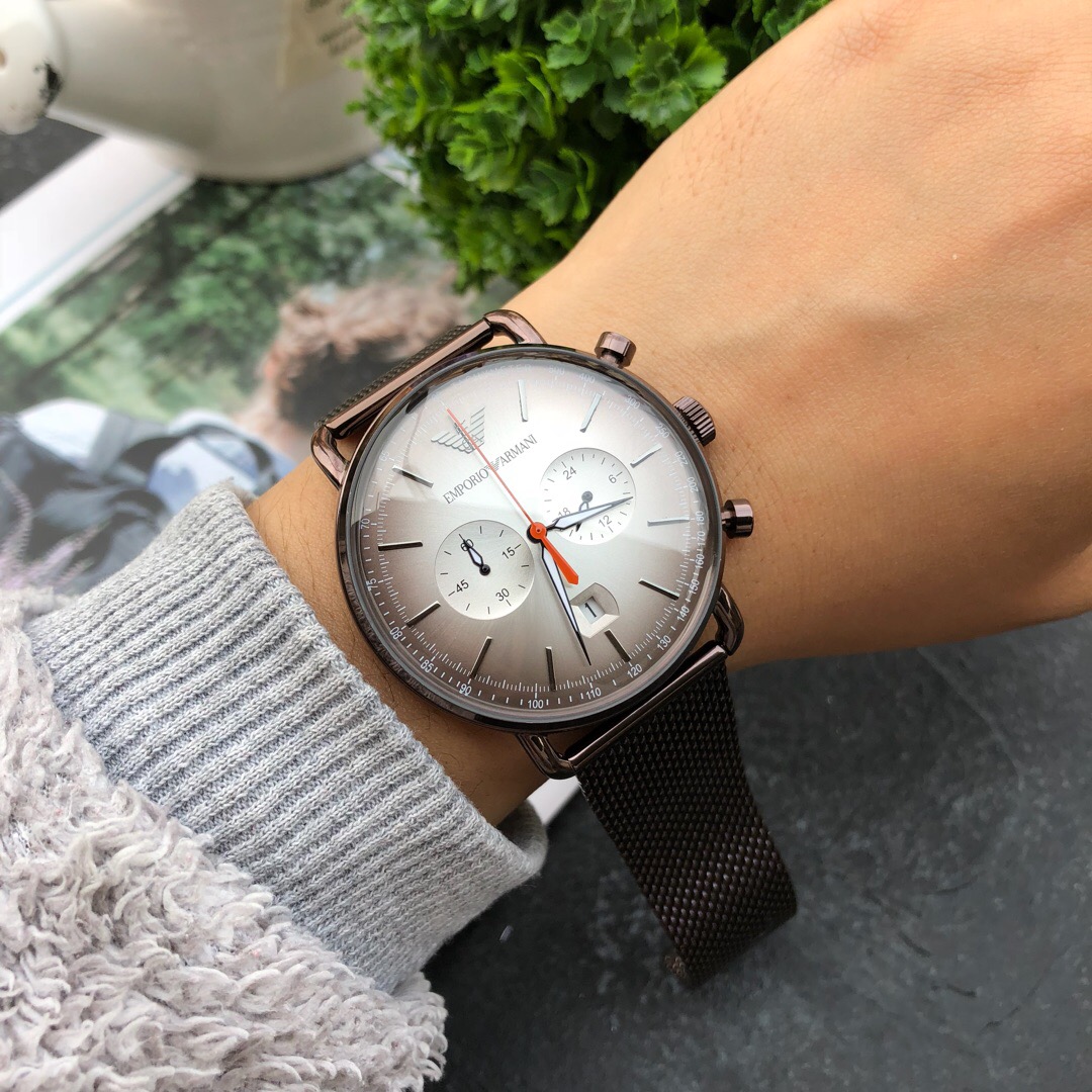 ARMANI/阿玛尼官网最新款,独特四分条纹表盘,条钉刻度清晰简洁,超薄三针带日历,耐磨钢带,适合夏天佩戴; 尺寸:43mm; 支持拆机验货!轻松过专柜!实物拍摄! 款式:Chanel-1 ¥2460.00 点...