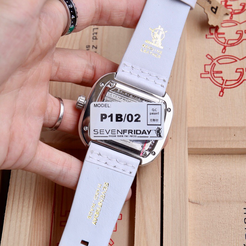 P1B02 SEVENFRIDAY P系列手表具有一个经抛光处理的不锈钢金属外壳和座圈,配有亮白色高电