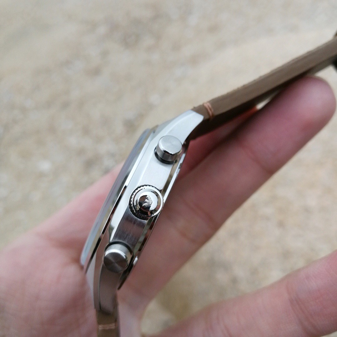 316L精钢表壳,多功能六针表盘,磨砂真牛皮表带,尺寸:43mm*11mm;