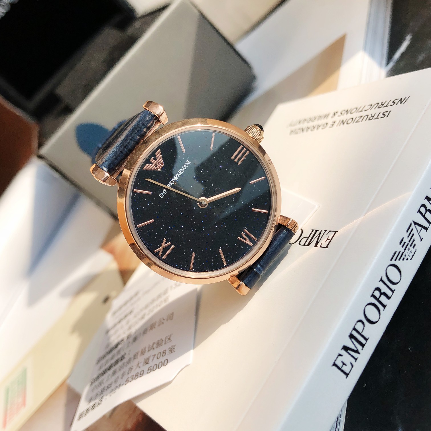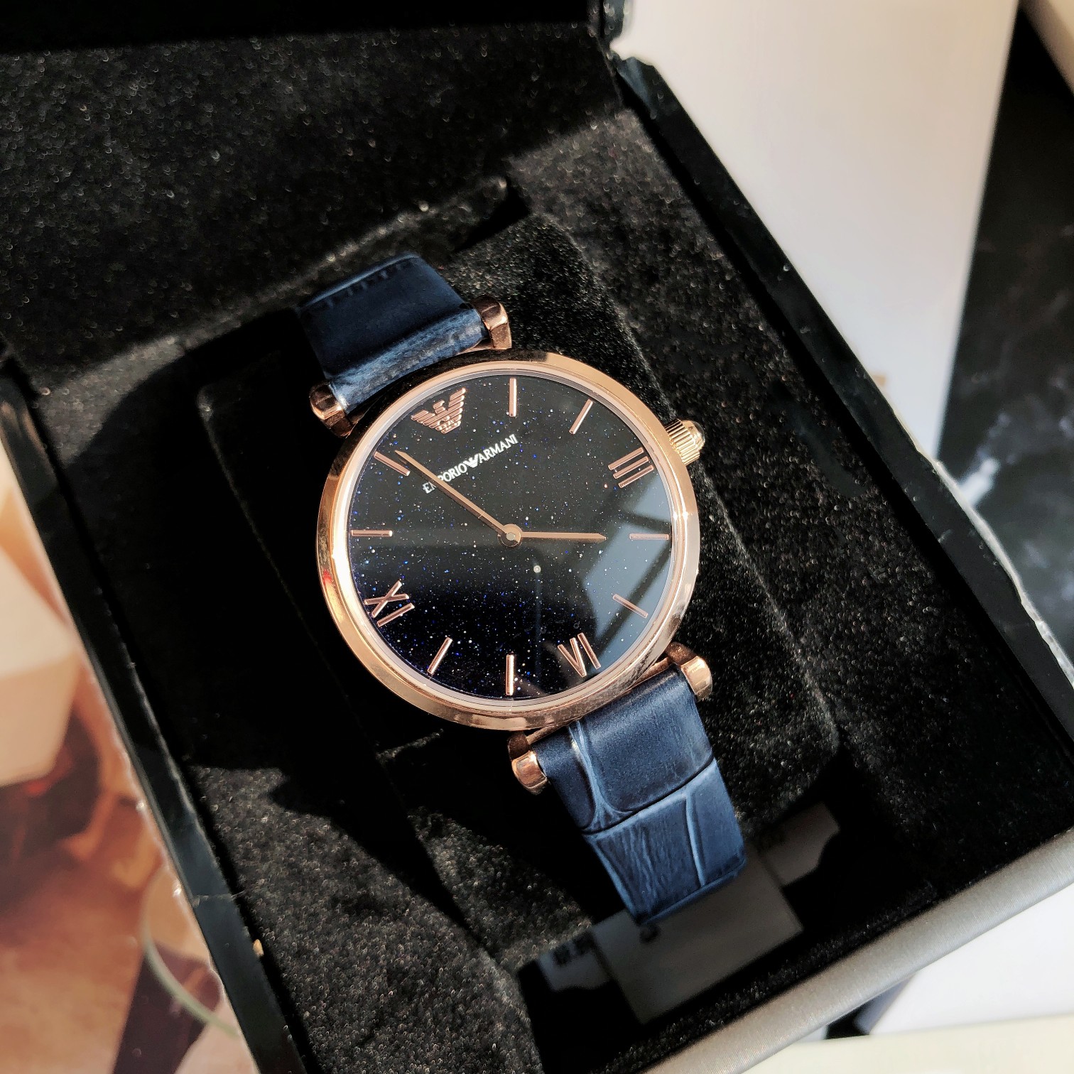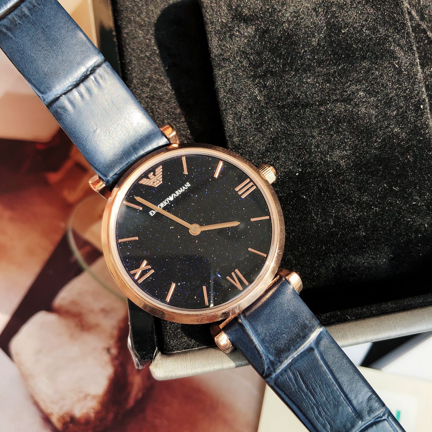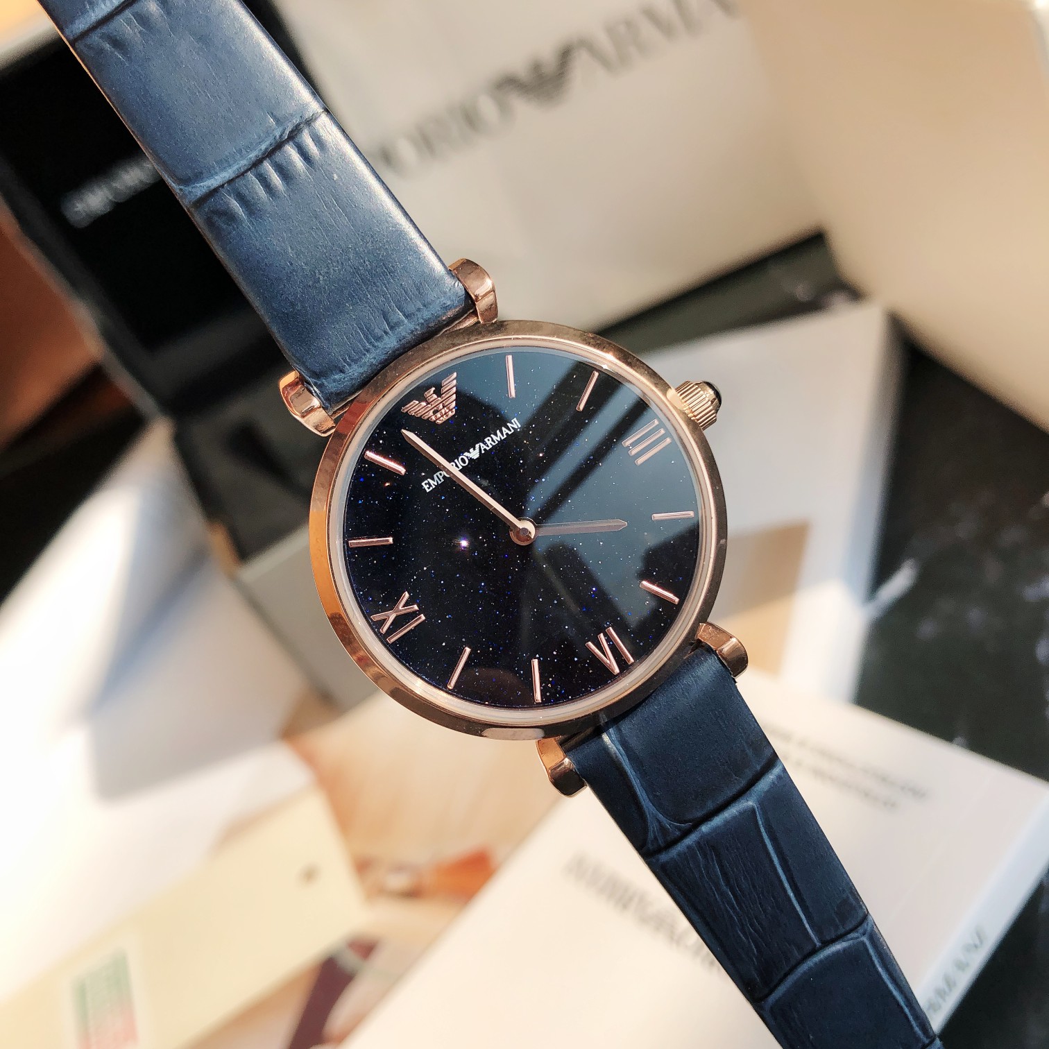 AR11424 (Emporio Armani)阿玛尼手表女士 欧美表满天星时尚皮带石英腕表,星空蓝满天星