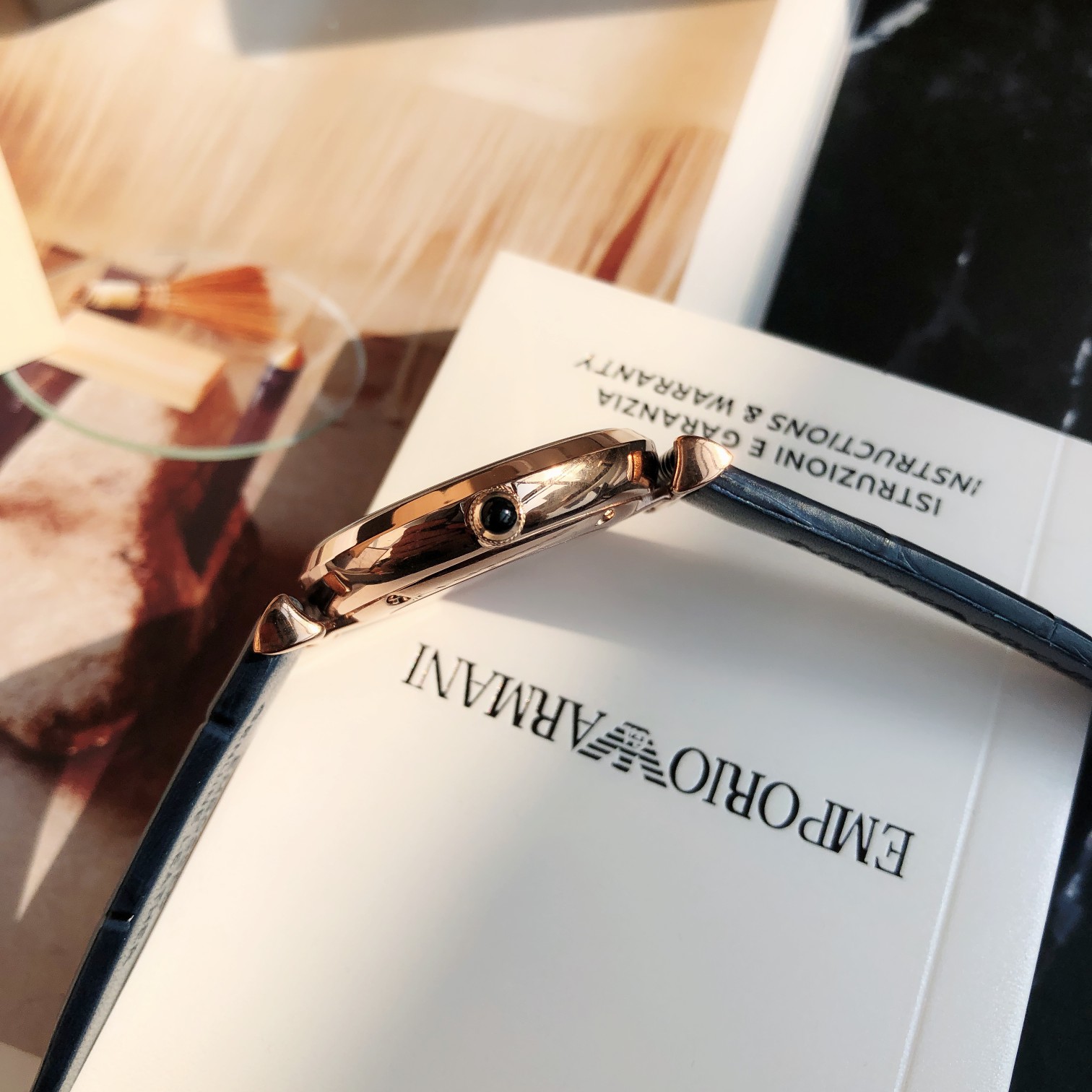 (Emporio Armani)阿玛尼手表女士 欧美表满天星时尚皮带石英腕表,星空蓝满天星AR11424 璀璨星空表盘,演绎神秘与浪漫 让仿佛置身于浩瀚无垠的夜空中,罗马数字刻度,经典复古,玫瑰金色表圈,延续表身抛光工艺,莹润细腻,螺纹表观匠心细节彰显品牌质感。黑色皮革表带,细腻纹理 赋予别样的视觉美感, 触感柔软,佩戴舒适;