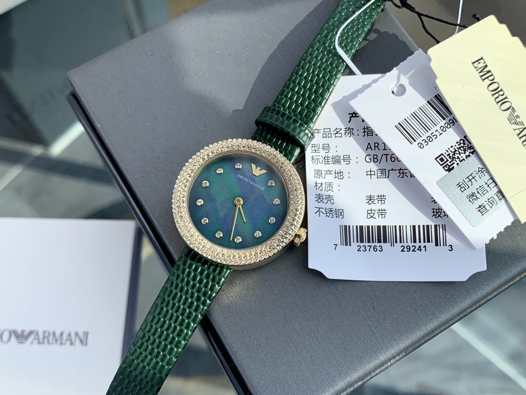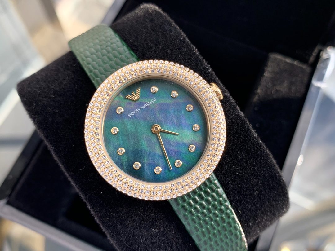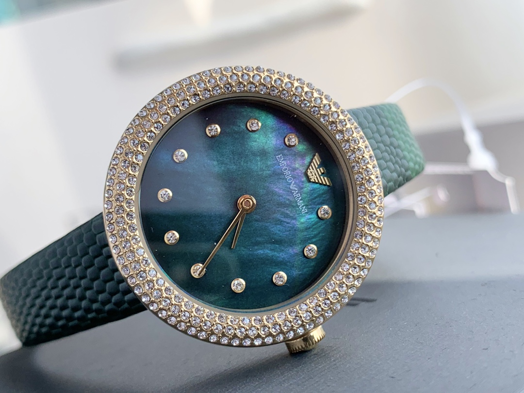 阿玛尼时尚休闲女士腕表,佟丽娅同款,腕美展现,熠熠生辉,多彩优雅姿态,璀璨表盘复古钻刻度,水钻点缀表圈,灵动奢华。细致抛光工艺,矿物质玻璃镜面,表盘直经30mm,厚度12mm,经典表带,柔软舒适,贴合腕间曲线,时尚优雅,配全套包装。