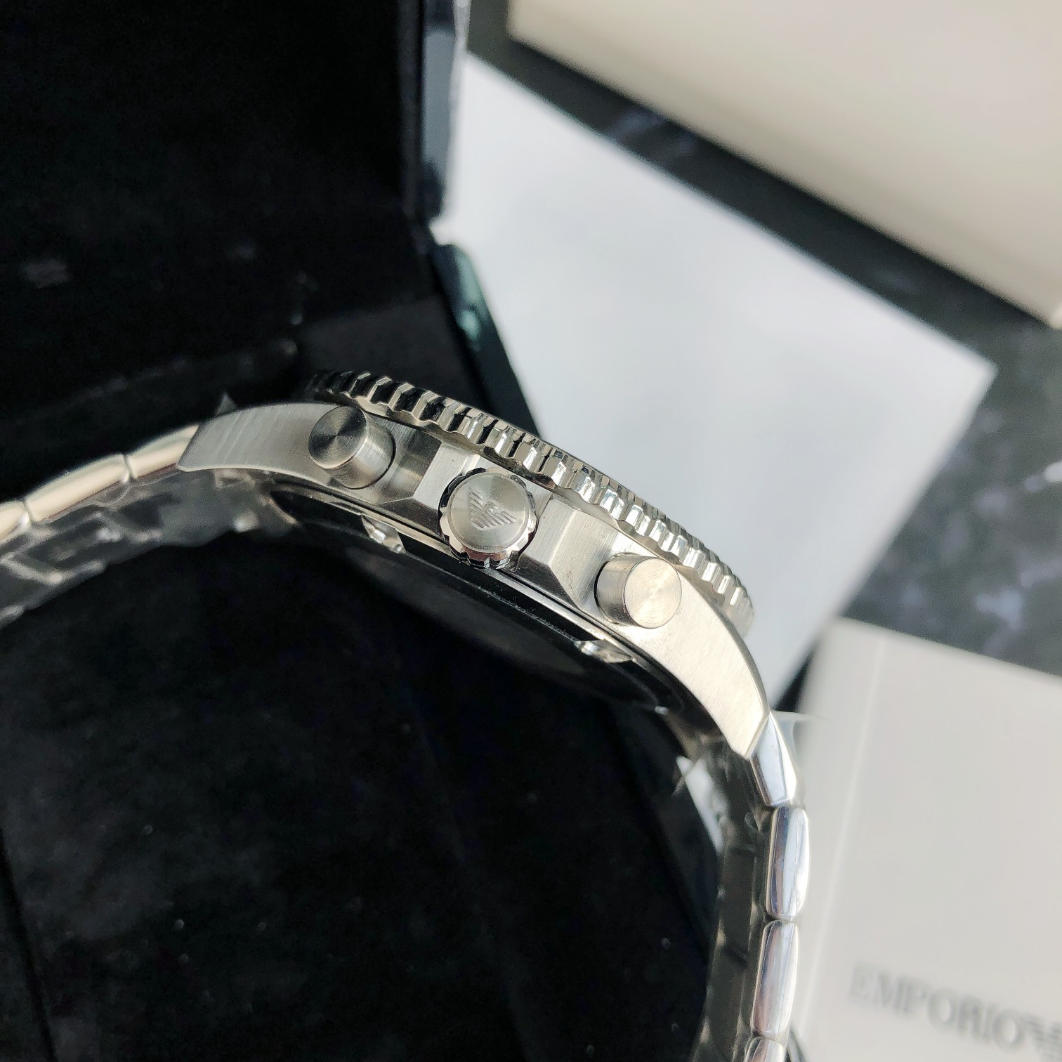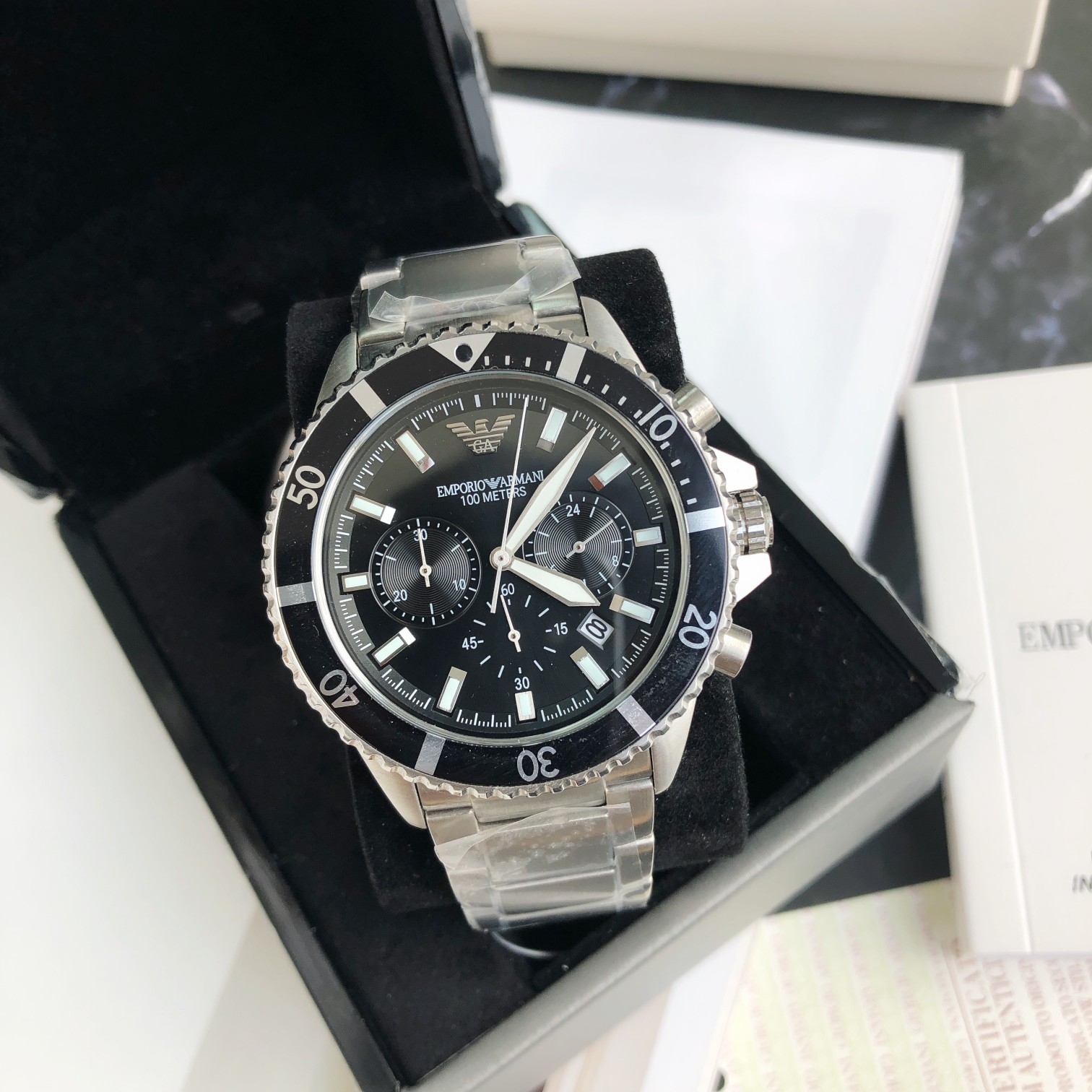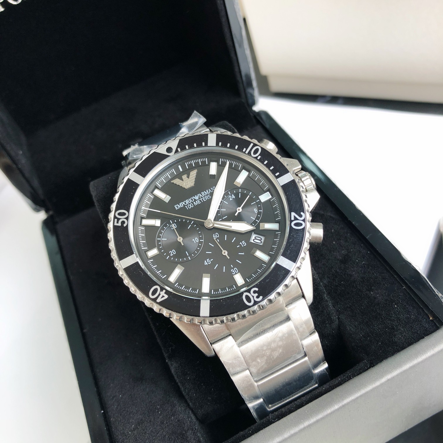 独特的三表冠设计,精细工艺打造,精美鹰标设计,经典不锈钢表带,表盘直径43mm,配全套包装出!