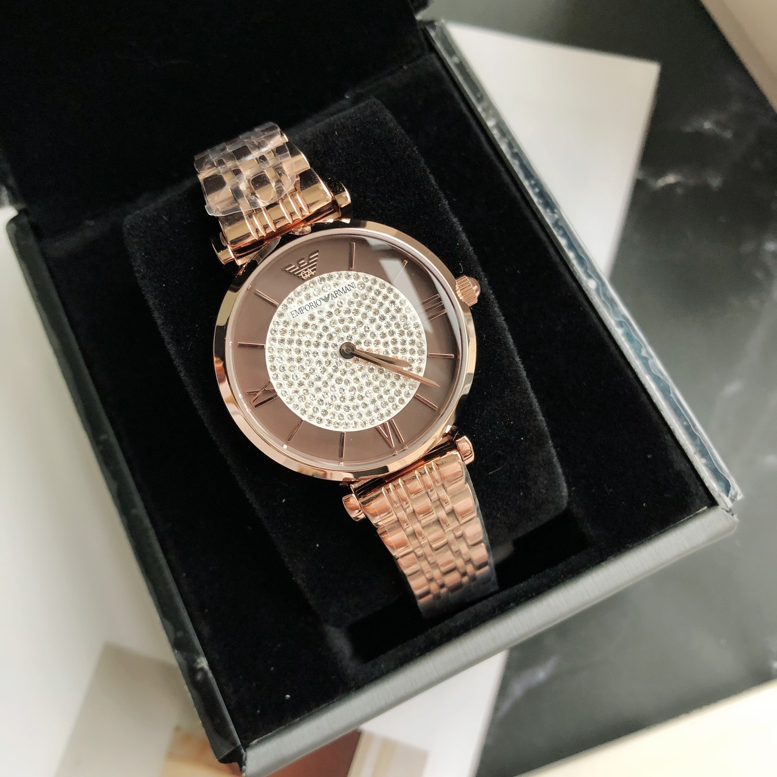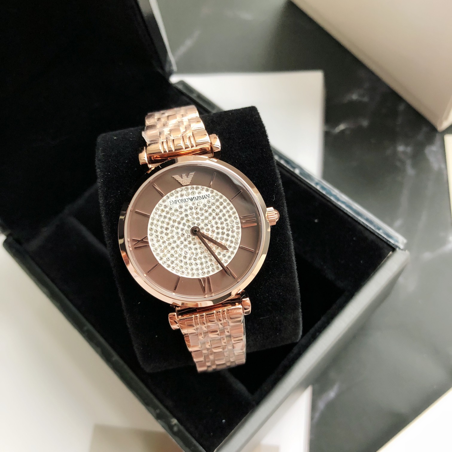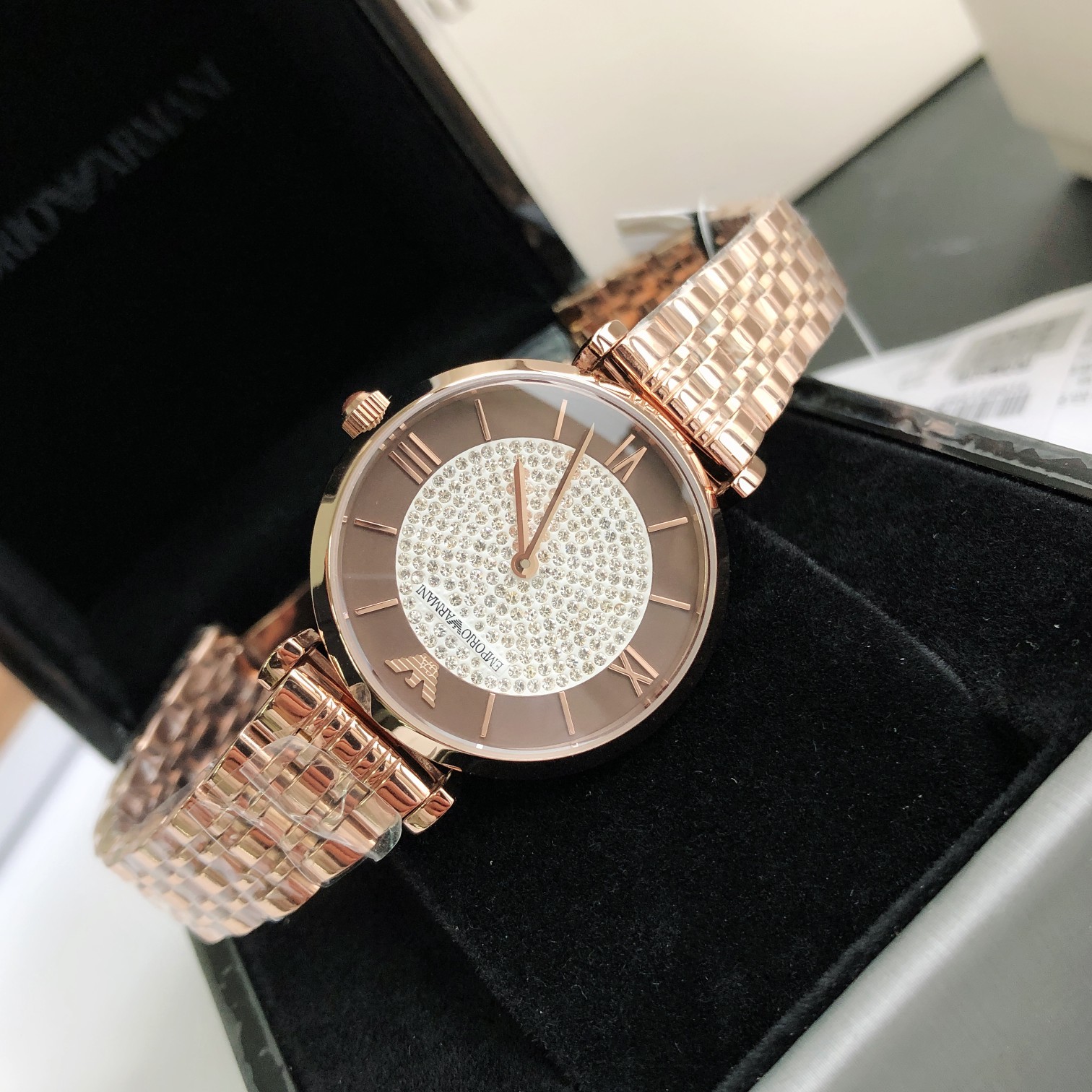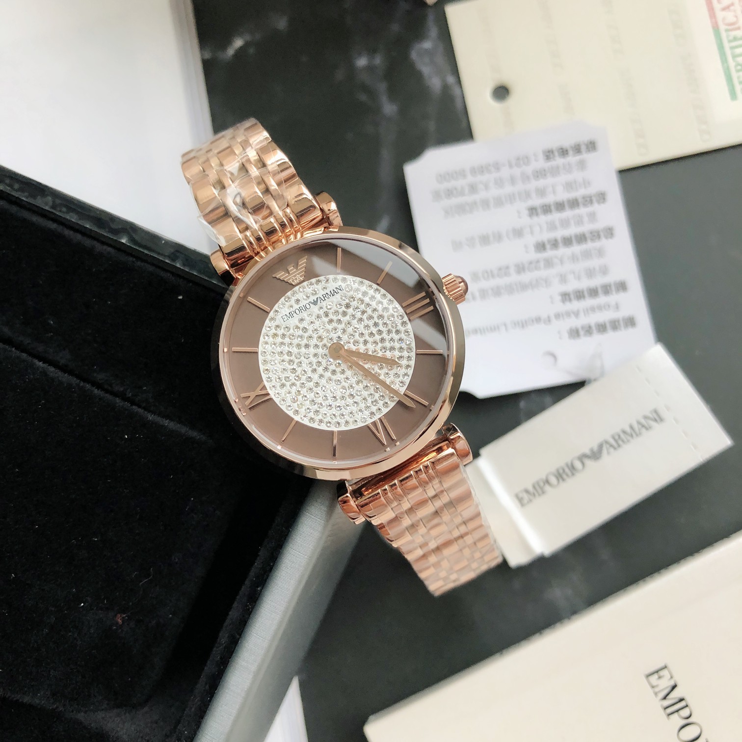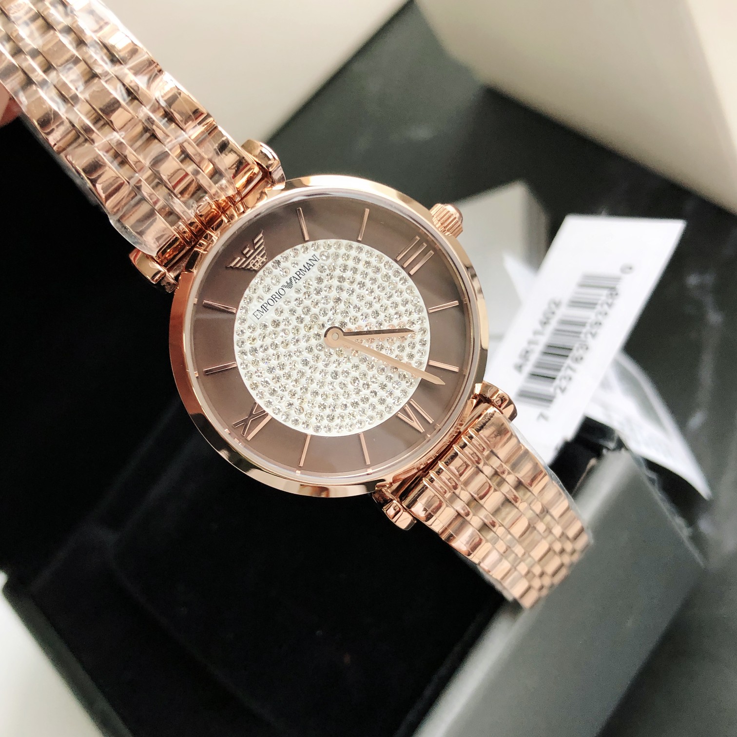 AR11402 手表钢带圆形镶钻轻奢时尚百搭石英女士腕表AR11402;黑色满天星表盘 金属指针,细节彰显