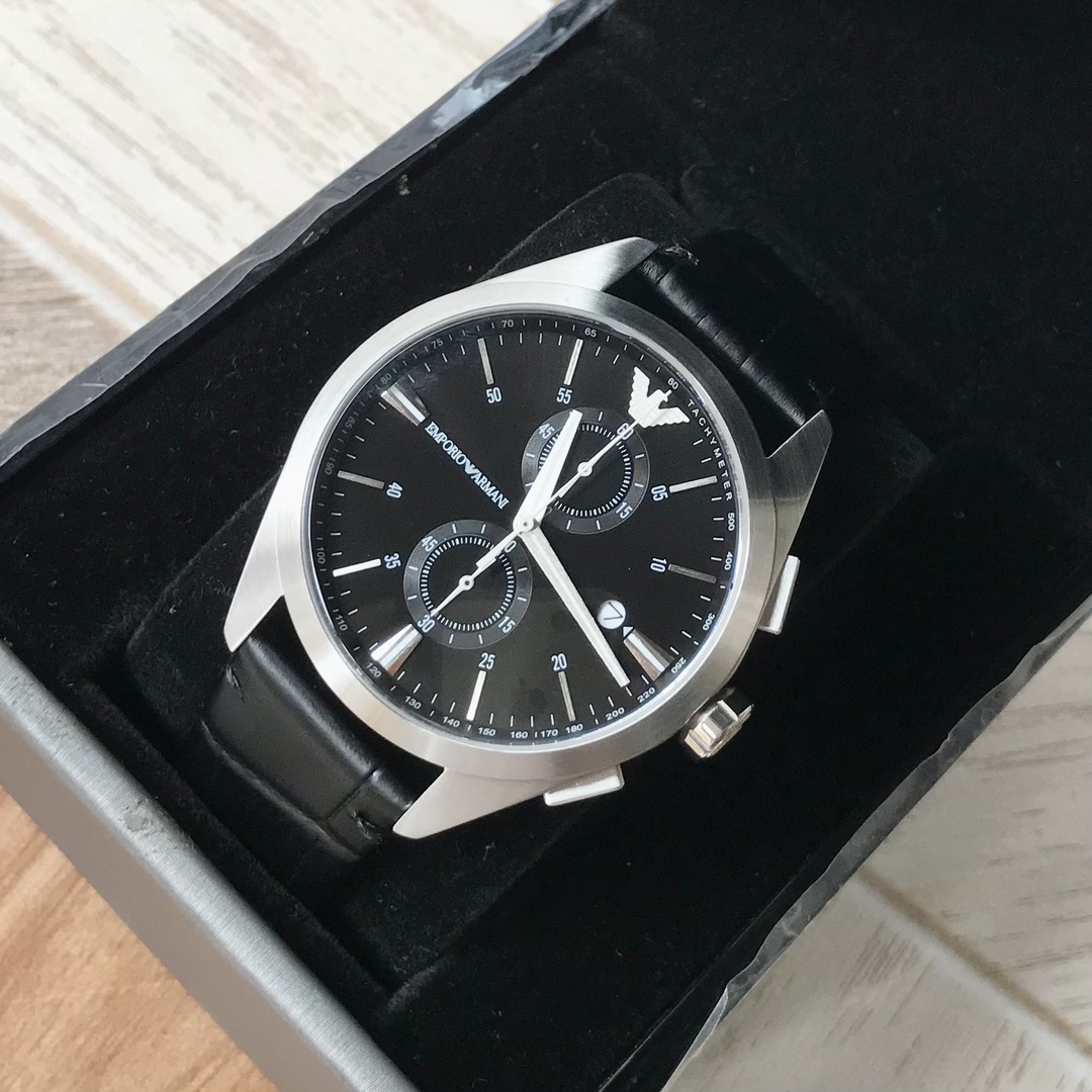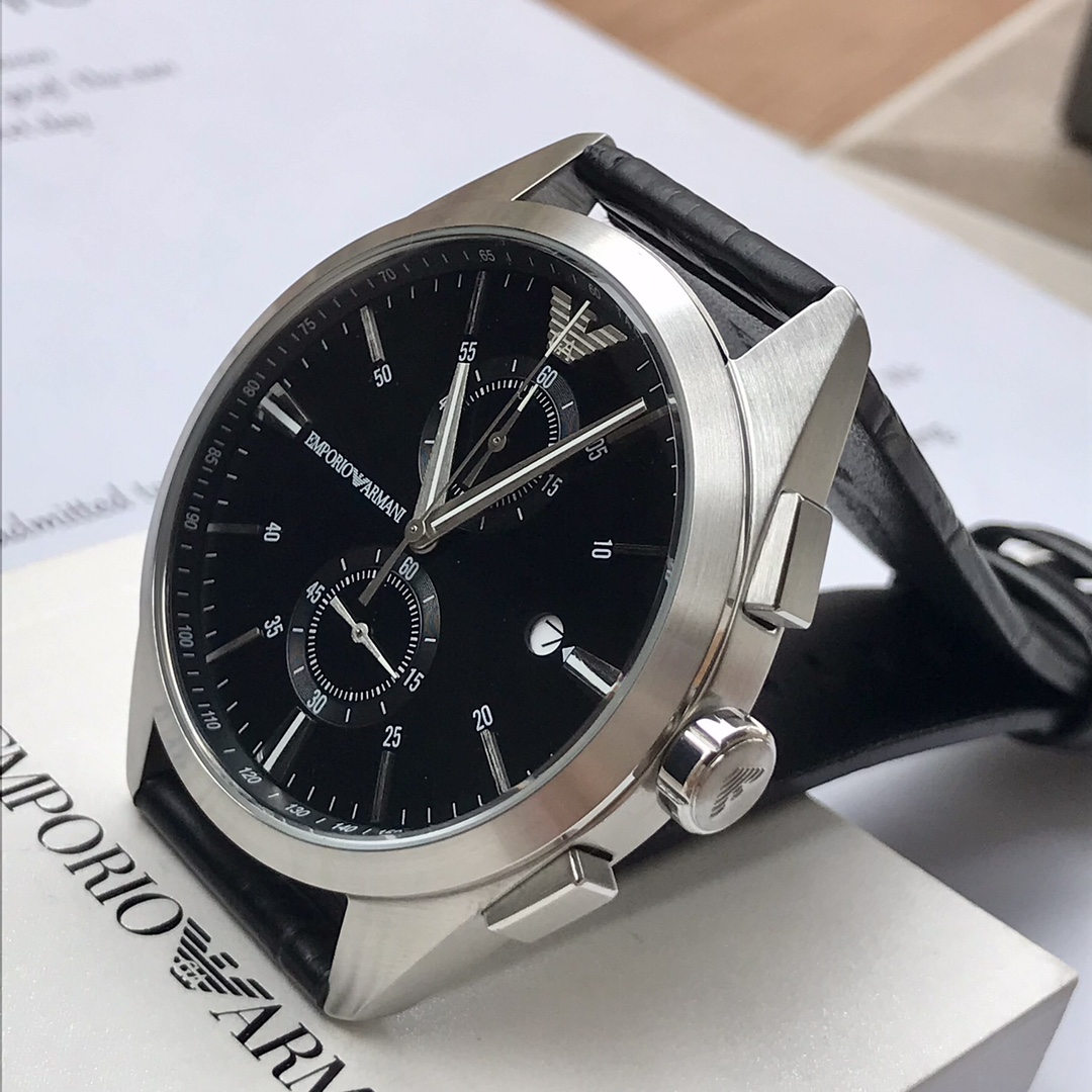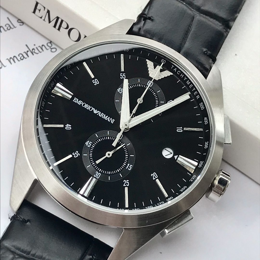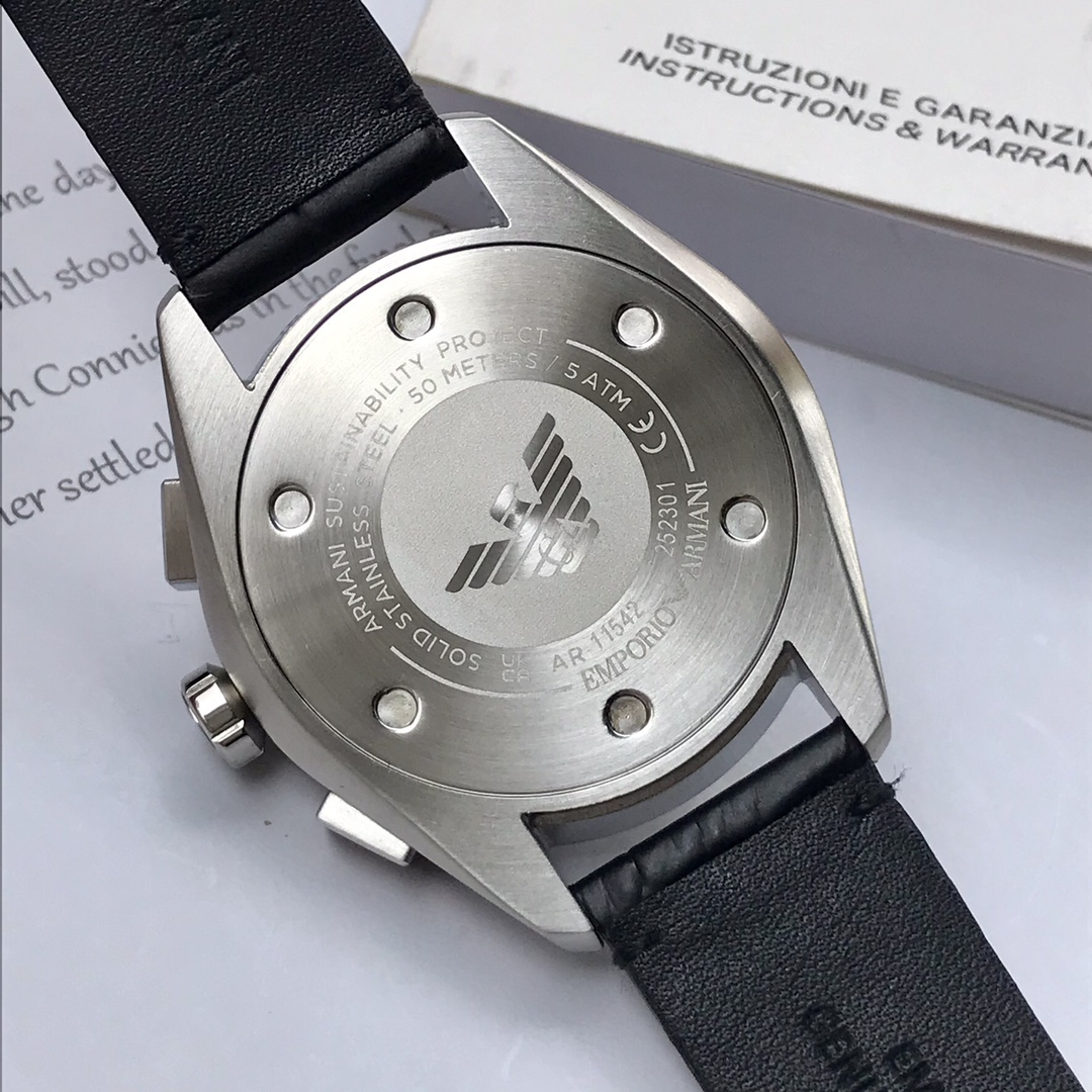 AR11542 阿玛尼Armani石英男士腕表,AR11542,黑色太阳纹表盘搭配夜光指针与两眼设计,色彩