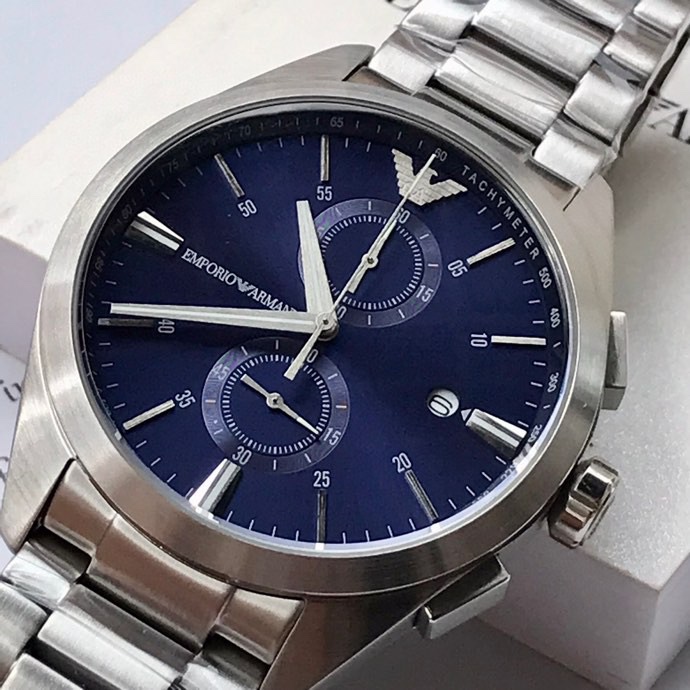 AR11541 阿玛尼Armani石英男士腕表,AR11541,蓝色太阳纹表盘搭配夜光指针与两眼设计,色彩