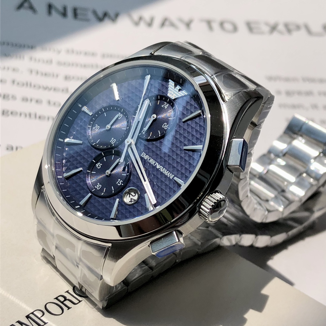 AR11528 阿玛尼(Emporio Armani)手表男款 ,潮流飞行员系列男表三眼表盘石英表蓝色表盘