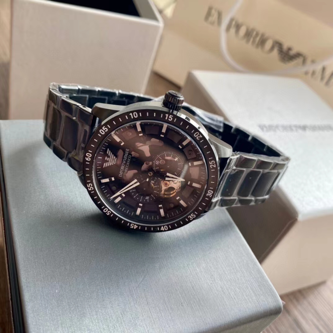 AR60054 阿玛尼AR60054银色镂空镶钻透视自动机械表 !镂空透视窗,质感指针、利落线条大气跃然于