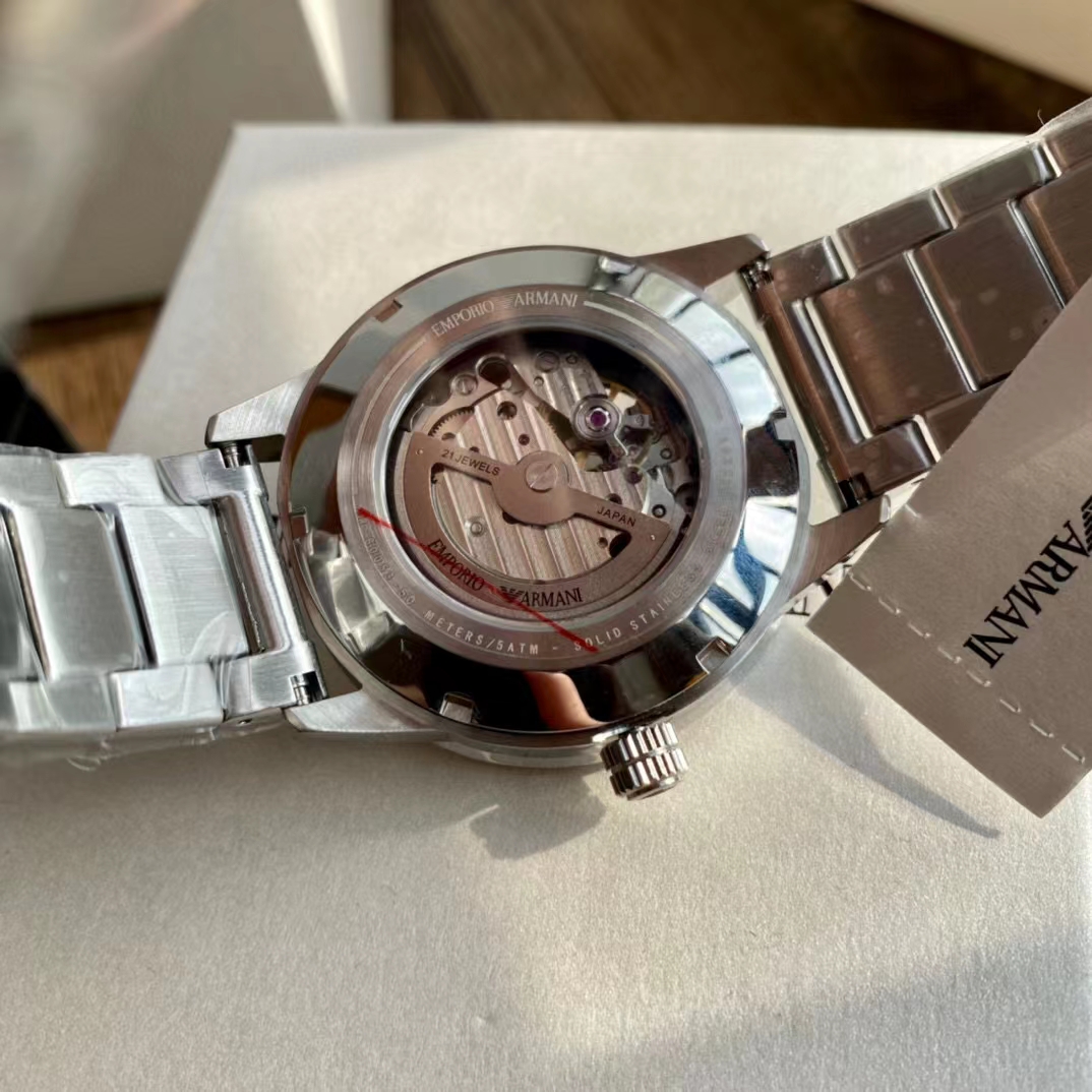 阿玛尼AR60053银色镂空镶钻透视自动机械表 !