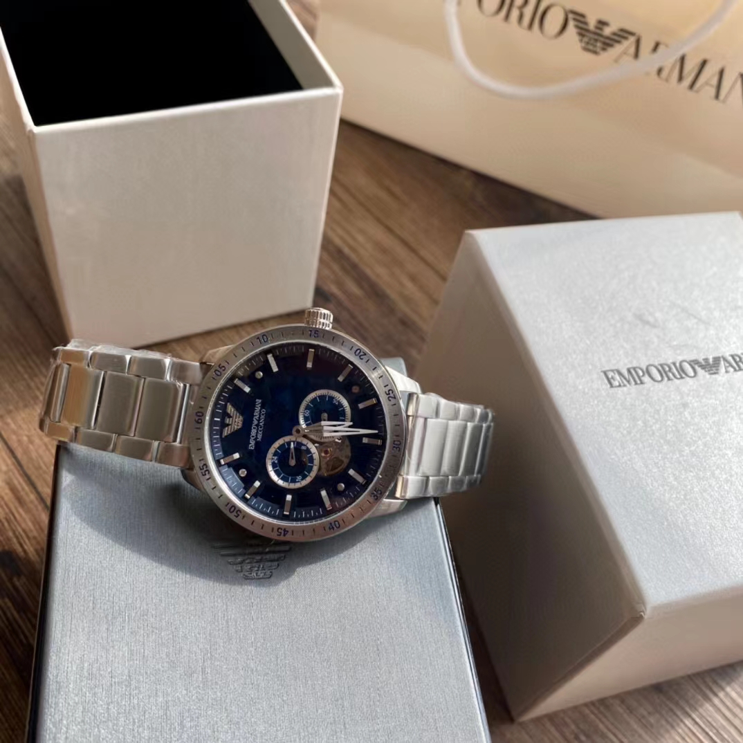 AR60052 阿玛尼AR60052银色镂空镶钻透视自动机械表;镂空透视窗,质感指针、利落线条大气跃然于手