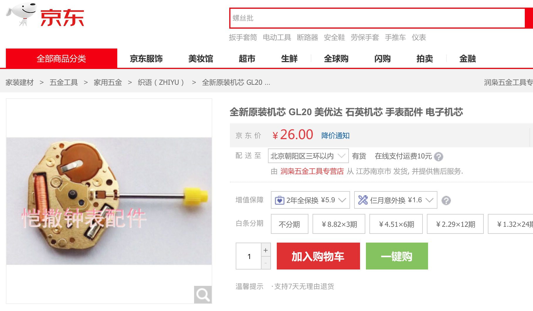 打开京东商城,然后搜索GL20机芯,就可以搜到一些出售GL20机芯的商家,并且有标价: