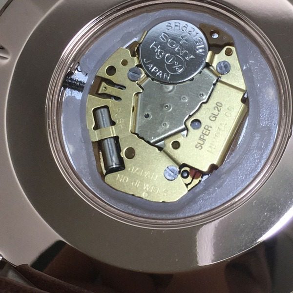 下图就是DW手表的机芯,以及机芯上使用的SONY的纽扣电池实物图。
