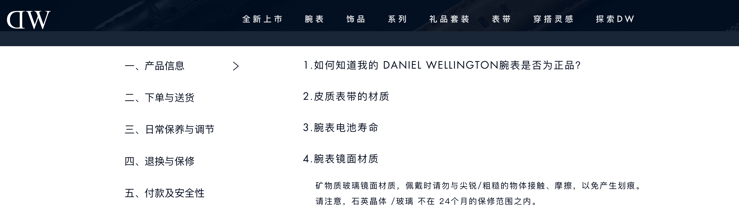 DW手表的镜面玻璃材质在官网说明里说的很清楚——矿物质玻璃。