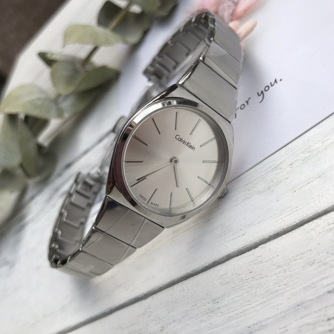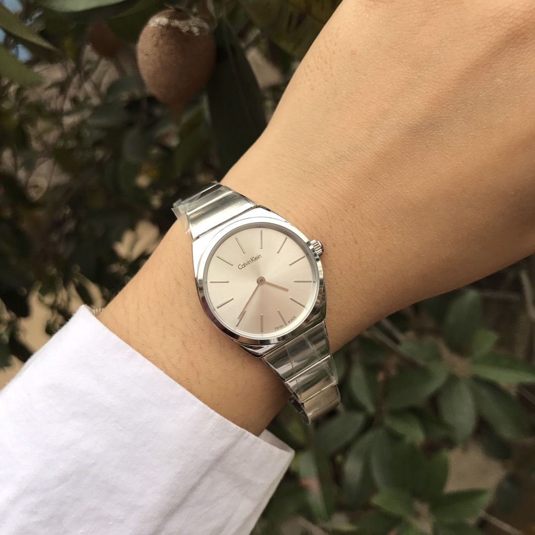 原装 CK(CalvinKlein SUPREME MINI 系列) 手镯型钢带女表,简洁两针表盘递减宽度表带,极具层次感;